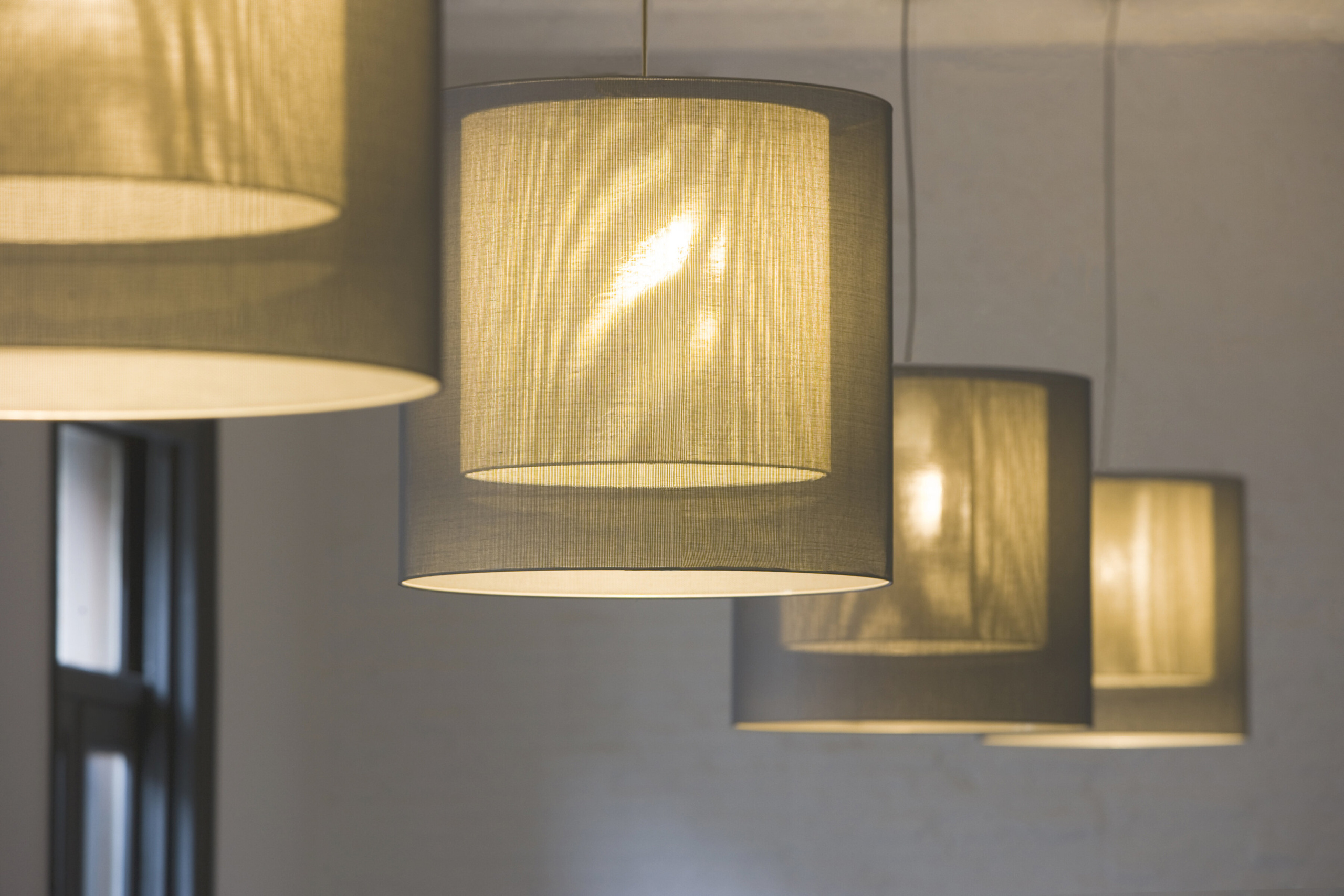 Дизайн предлагает две вариации. Первая — лаконичный вариант с одним цилиндрическим абажуром. Вторая — более эффектная версия с двумя перекрывающимися абажурами. В ней муаровый узор проявляется особенно ярко.