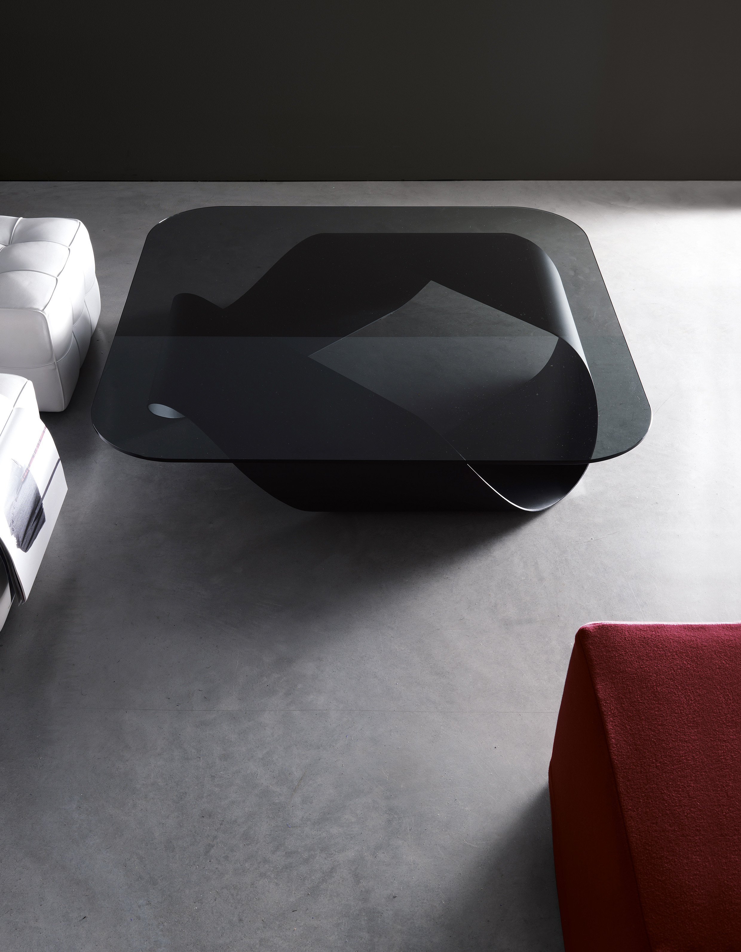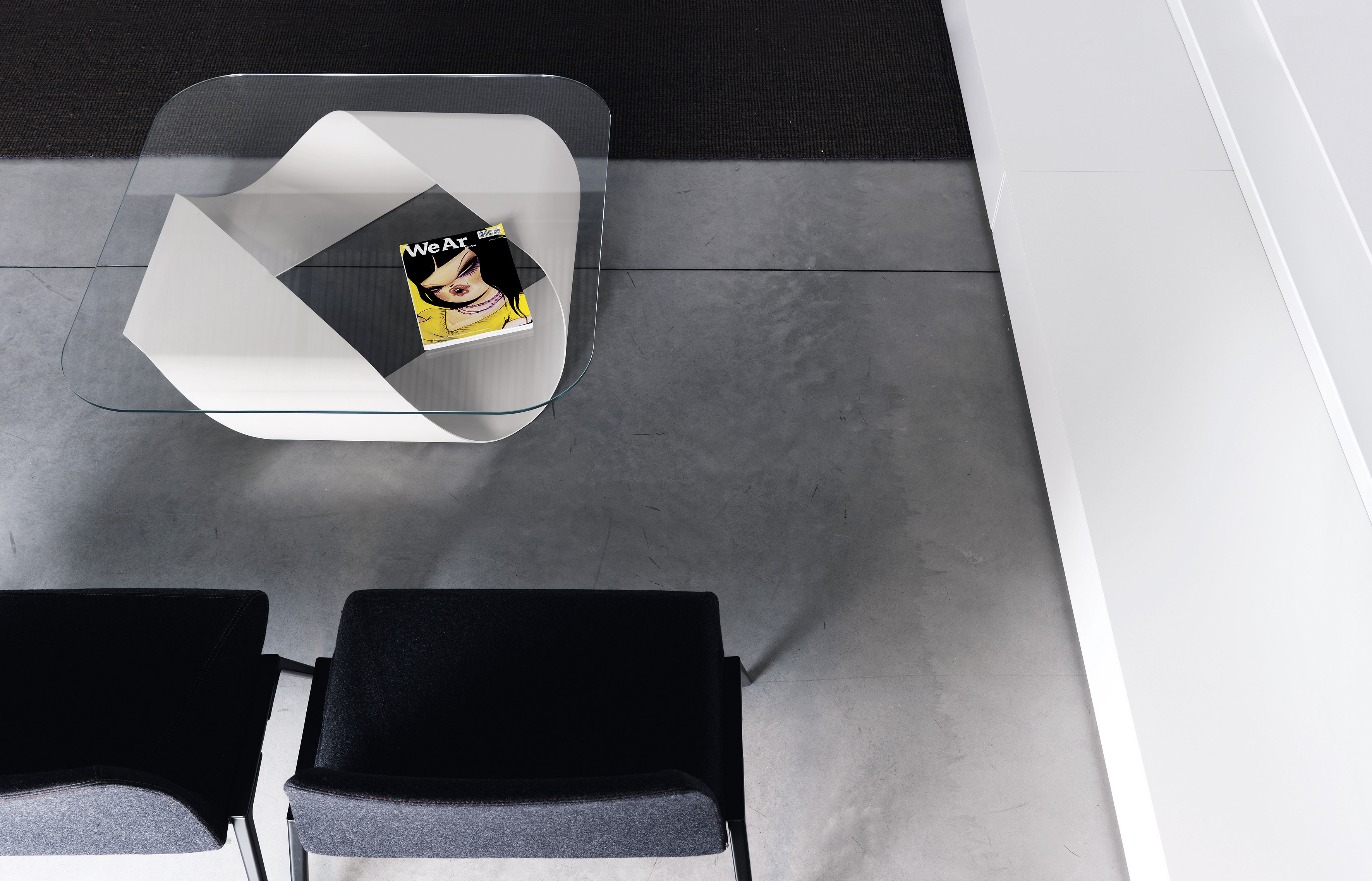 Столик Mobius был создан на основе геометрической формы, названной «лист Мебиуса». Основание изготавливается из гнутой стали, затем покрывается лаком в черном или белом цвете. Столешница выполняется из стекла в светлом или темном оттенке. Основание можно использовать без столешницы. Стол доступен в двух размерах. Подробнее о данной модели уточняйте у менеджеров или в PDF инструкции.