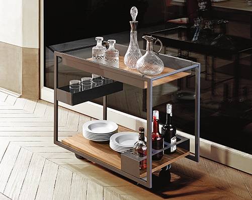 Mojito Wood сочетает в себе лаконичный дизайн и практичную функциональность. Прочная стальная конструкция с графитовым покрытием служит элегантным основанием для двух деревянных полок. Благодаря чистой геометрии и комбинации премиальных материалов модель гармонично вписывается в различные стили интерьера. Идеальное решение для приема гостей в гостиной или в качестве стильного акцента в зоне отдыха. Барный столик впечатляет универсальностью и удачным сочетанием металла и дерева.