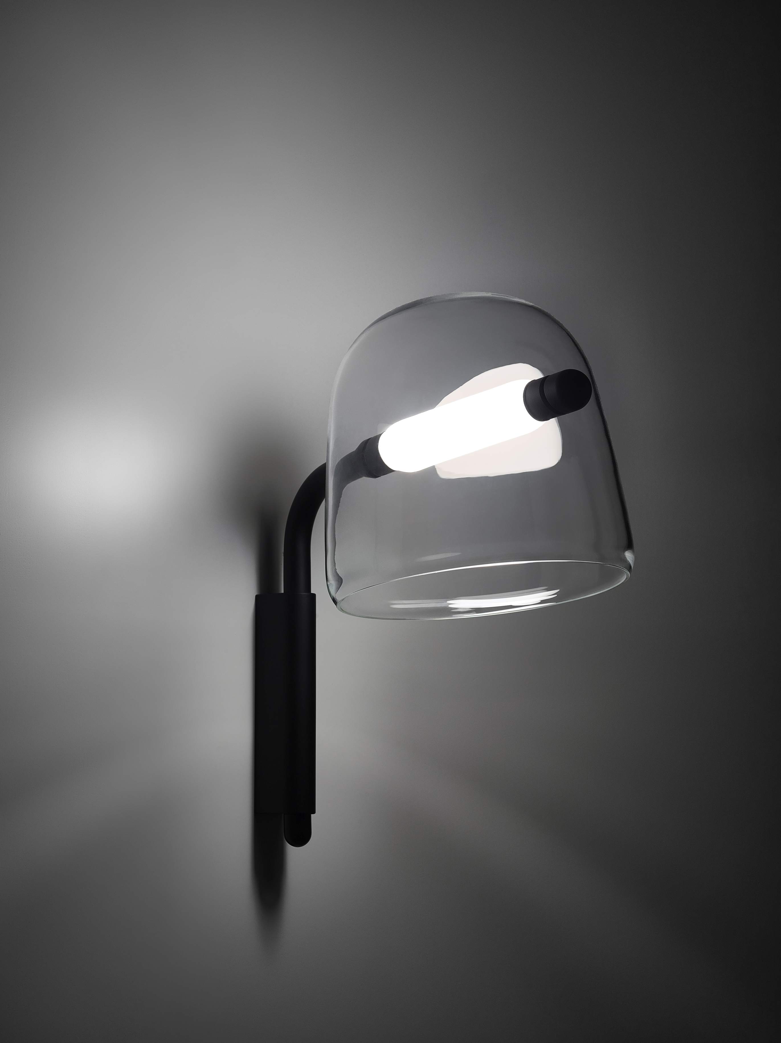 Настенный светильник Mona wall воплощает идею взаимодействия света и формы. Его главная особенность — в том, как свет проникает сквозь объёмное выдувное стекло, создавая живое, напряжённое свечение. Стекло выглядит одновременно лёгким и основательным, а игра света придаёт ему особую выразительность.
