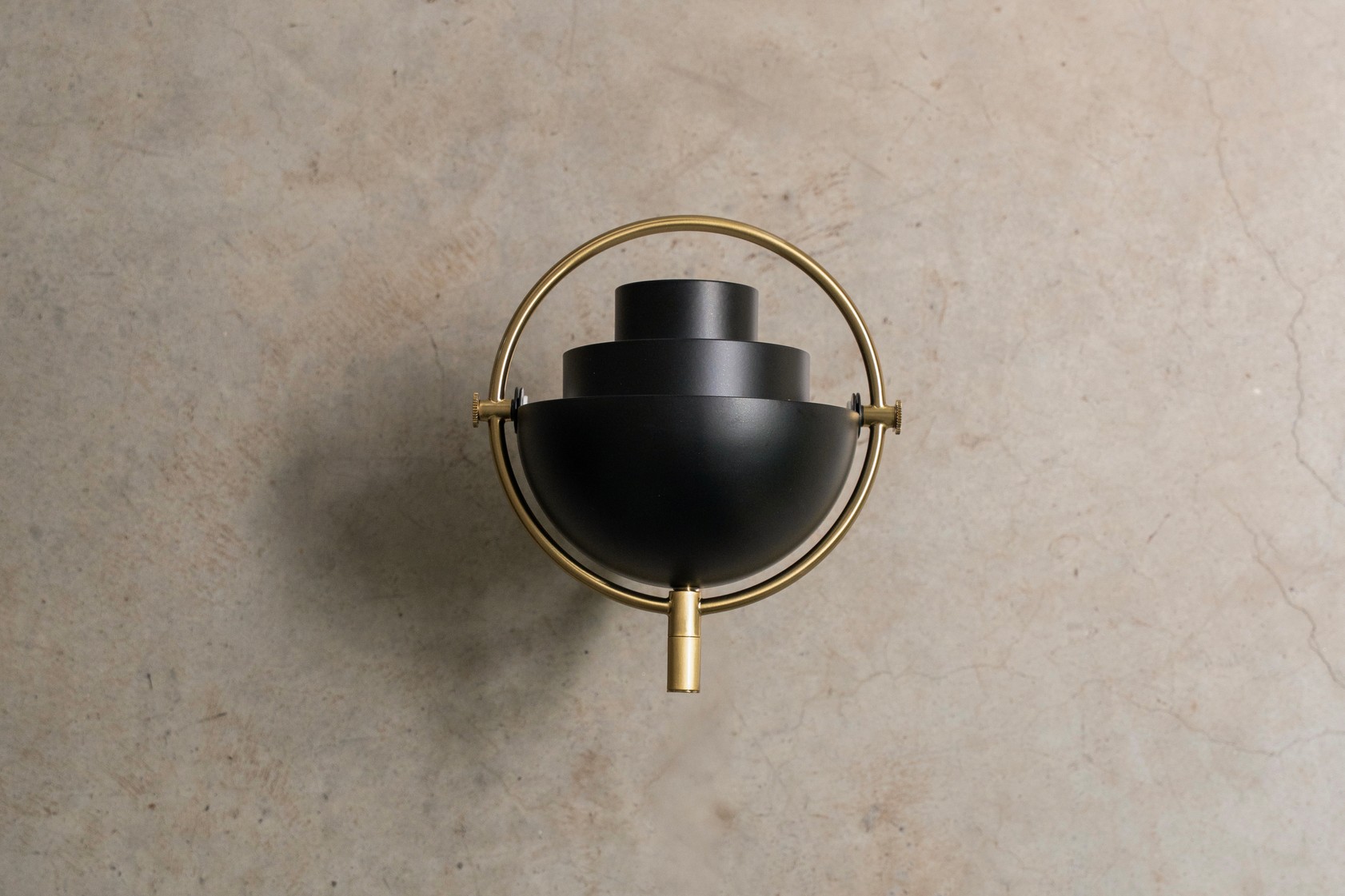 Настенный светильник GUBI Multi-Lite Wall Lamp — это скульптурное и функциональное произведение датского дизайна, разработанное Луисом Вайсдорфом и отличающееся подвижными плафонами и шарнирным кронштейном, позволяющими изменять направление света. Его конструкция включает два подвижных четверть сферических плафона, центральный цилиндрический элемент, вращающееся внутреннее кольцо (на 90 градусов) и поворотный кронштейн (на 180 градусов). Такое сочетание движений позволяет создавать широкий спектр сценариев освещения: свет может быть направлен вверх (рассеянный свет), вниз (фокусированное освещение) или асимметрично, в зависимости от потребностей и настроения.