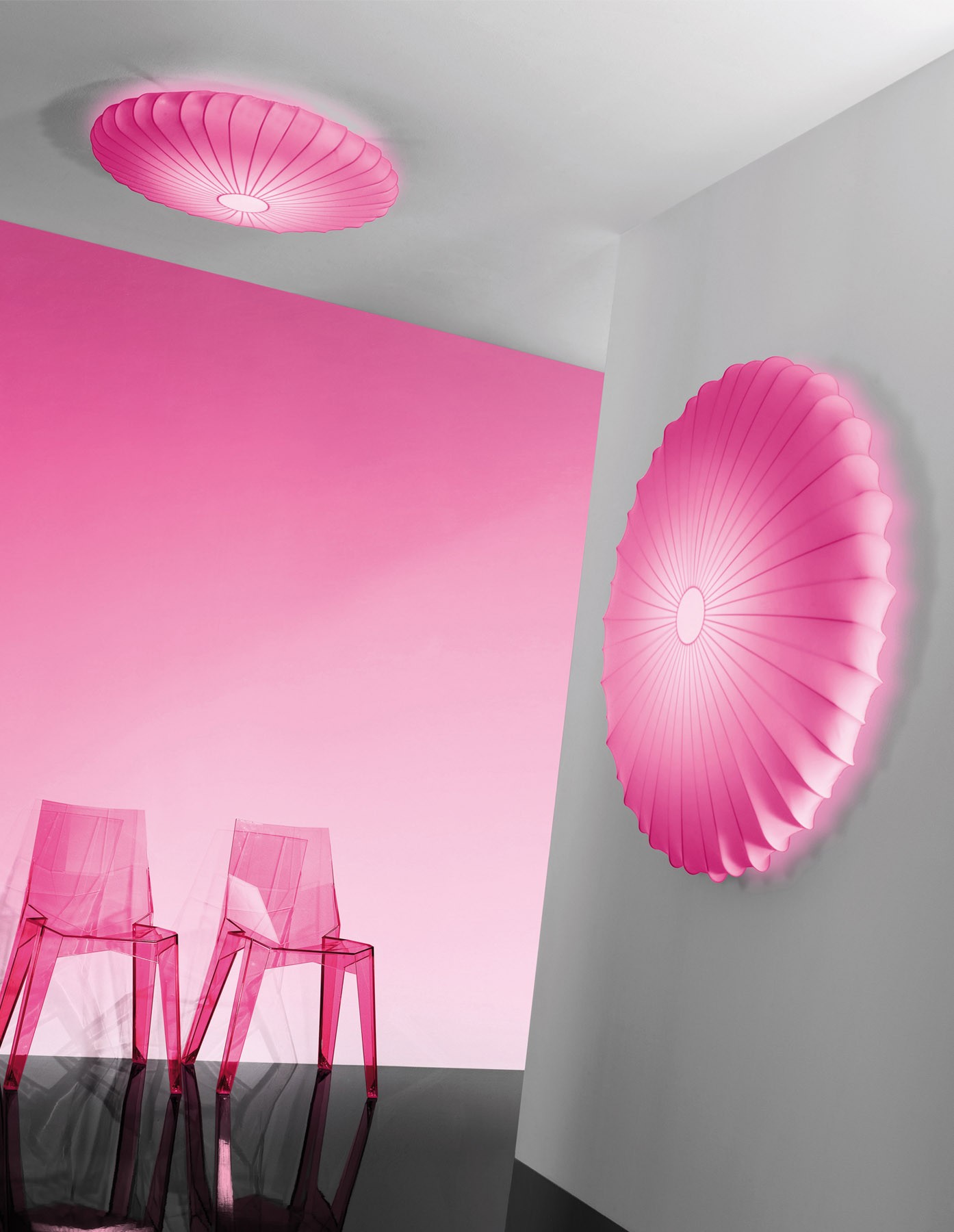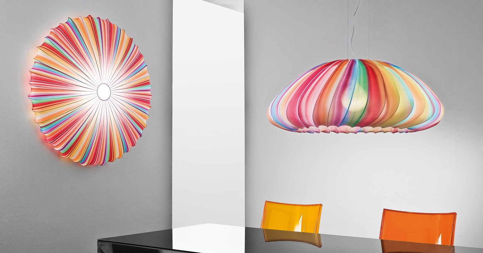 Палитра веселья, ярких цветов и новых отделок, а также мягких, гибких линий, которые оживают в широком спектре красочных вибраций, вспыхивающих, как лепестки на солнце. MUSE захватывает и усиливает некоторые впечатляющие аспекты природных элементов, создавая веселый свет и стиль создавая оригинальные и интригующие выразительные результаты. Цвета, формы, размеры и "начинка" - природные ссылки (в новых "Fiore" и "Sticks" тканевых моделях) сделали коллекцию чрезвычайно универсальной, подходящей для самых различных условий от интерьеров частного дома до коммерческого сектора. Эти чувственные и мягкие лампы имеют металлический каркас, завернутый в эластичную ткань, которая является съемной, ее можно стирать и менять.