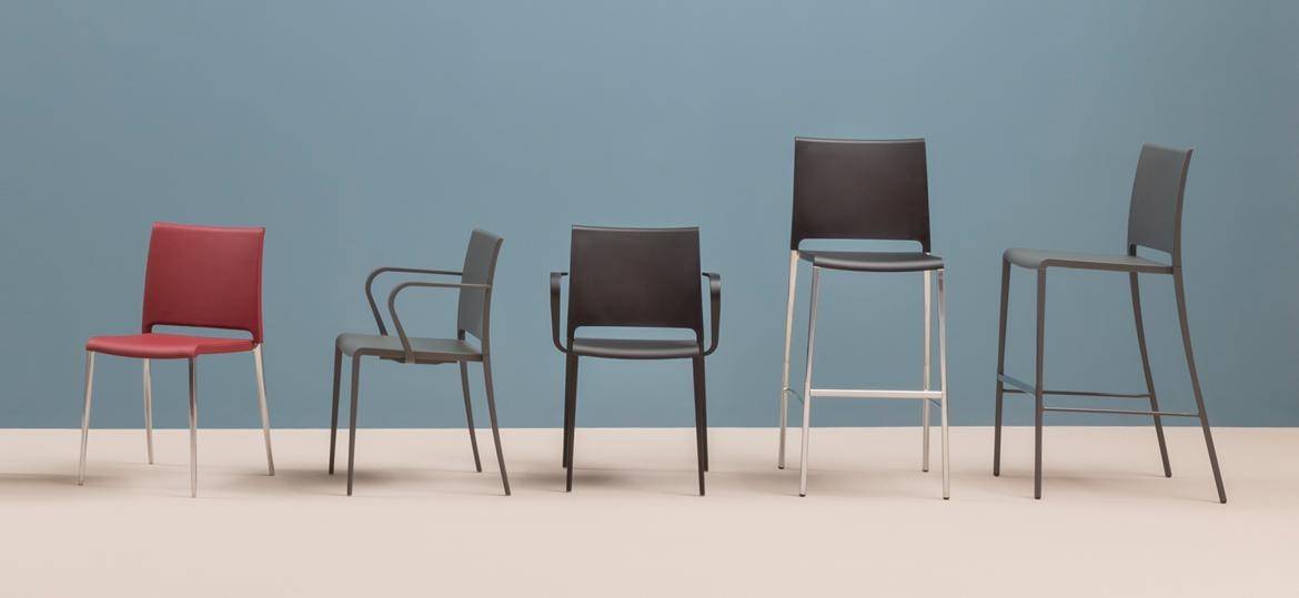 Mya — это коллекция состоящая из барных и обеденных стульев. Спинка стула Mya обивается текстилем, а сидение натуральной или искусственной кожей. Доступно две модели: с подлокотниками или без них. Ножки и подлокотники выполняются из алюминия: сатинированного или полированного. Версию стула с подлокотниками и ножками покрытыми лаком можно использовать на улице, благодаря использованию специальных влагостойких материалов. Детали уточняйте у менеджеров или в PDF инструкции.