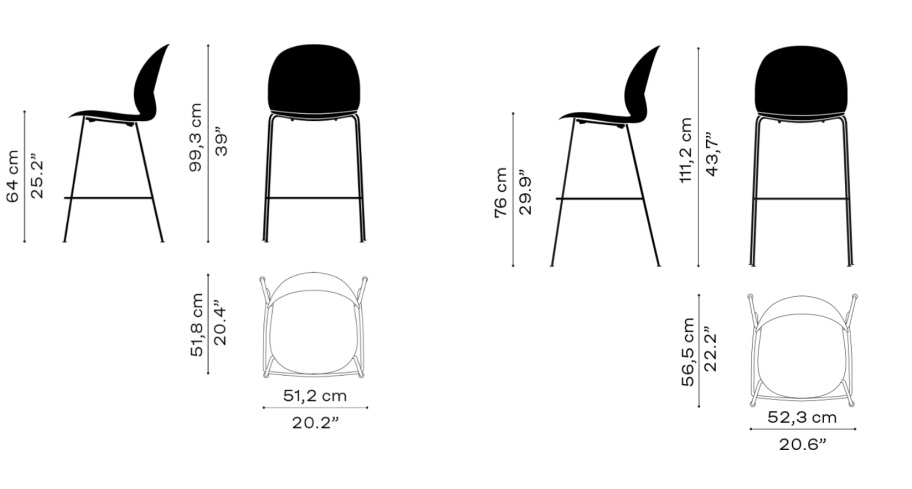 Стул доступен в версиях барной и стоечной высоты, что позволяет использовать его как в домашних условиях, так и на рабочих местах. Конструкция с открытым основанием обеспечивает возможность штабелирования, что оптимизирует хранение и транспортировку.