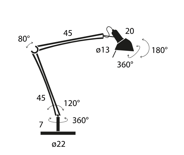 Все светильники серии объединяют компактный рефлектор. Также они оснащены центральным фрикционным механизмом, обеспечивающим надежную фиксацию.