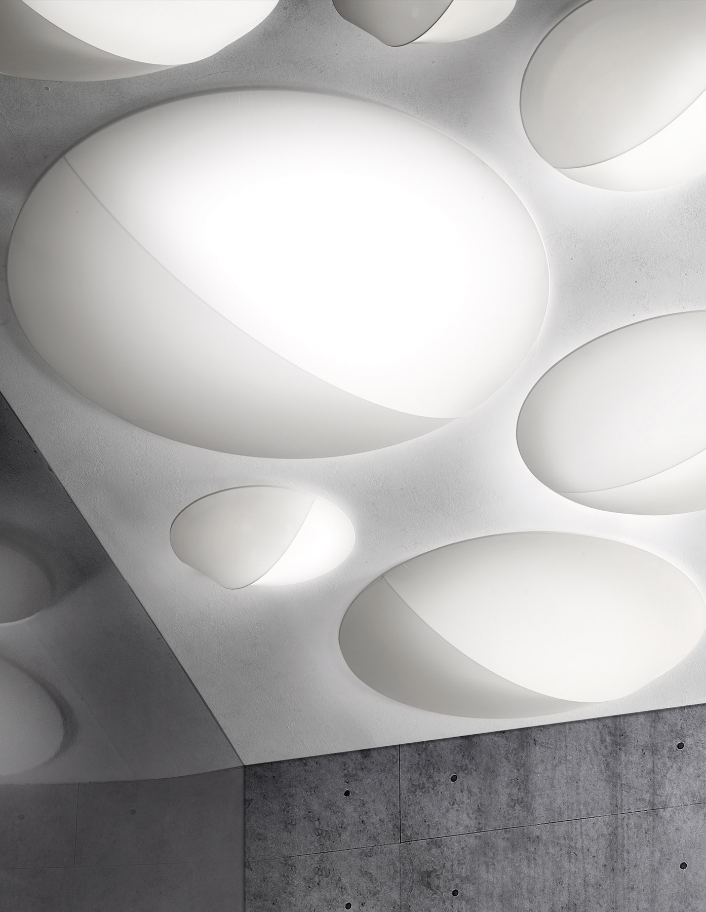 Большие белые полотна, раскрывающиеся в геометрическую форму квадрата, где натяжение и чистота ткани прерываются только прямым штрихом, который пересекает ее вдоль, создавая эффект сияния. В результате получается мягкий и волнистый свет, который получает форму и выливается из предмета, приобретающего индивидуальность, несмотря на свою исключительную простоту. Коллекция Nelly Straight состоит из плафонов и настенных светильников из эластичной не деформирующейся ткани, полностью съемной и моющейся, с каркасом из окрашенного металла. Светильники предлагаются трех разных размеров (60х60 см, 100х100 см и 140х140 см): ненавязчивые и, в то же время, исключительно декоративные светильники Nelly Straight больших размеров способны стать ключевыми элементами интерьера.