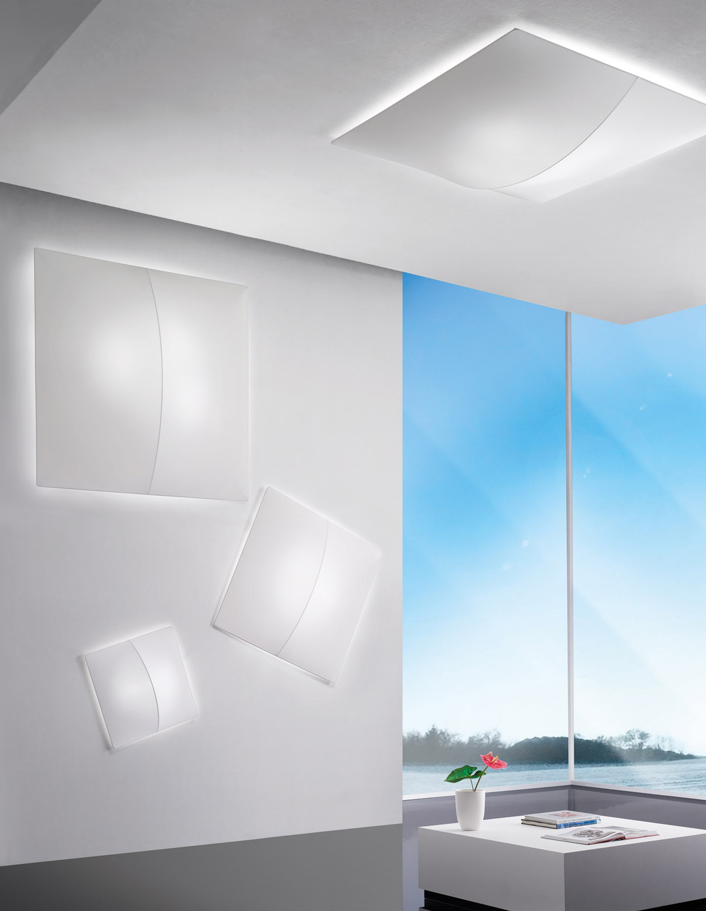 Большие белые полотна, раскрывающиеся в геометрическую форму квадрата, где натяжение и чистота ткани прерываются только прямым штрихом, который пересекает ее вдоль, создавая эффект сияния. В результате получается мягкий и волнистый свет, который получает форму и выливается из предмета, приобретающего индивидуальность, несмотря на свою исключительную простоту. Коллекция Nelly Straight состоит из плафонов и настенных светильников из эластичной не деформирующейся ткани, полностью съемной и моющейся, с каркасом из окрашенного металла. Светильники предлагаются трех разных размеров (60х60 см, 100х100 см и 140х140 см): ненавязчивые и, в то же время, исключительно декоративные светильники Nelly Straight больших размеров способны стать ключевыми элементами интерьера.