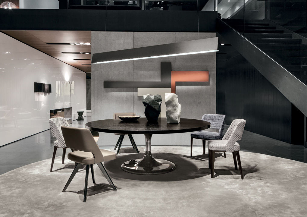 Коллекция Neto от фабрики Minotti включает в себя мебель для кухни, столовой и гостиной. Основание стола Neto изготавливается из прочного металла и окрашивается в темный цвет. Модель представлена в трех вариантах: круглый или квадратный стол на одной опоре, прямоугольный стол на двух опорах. Столешница выполняется из дерева, которое отделывается шпоном или покрывается лаком. Также для изготовления столешницы может использоваться мрамор. Стол доступен в нескольких размерах. Подробнее уточняйте у менеджеров или в PDF инструкции.