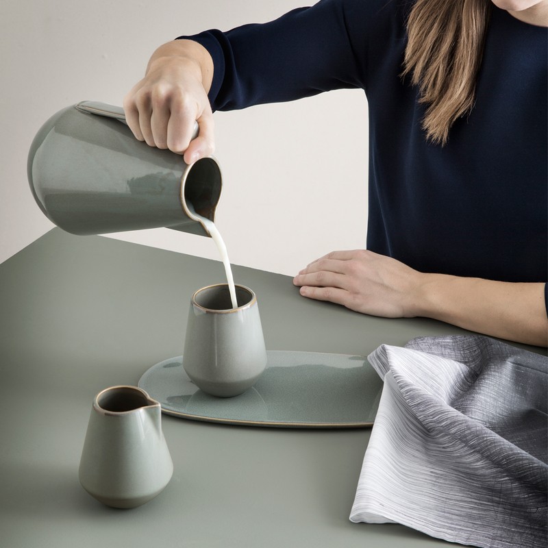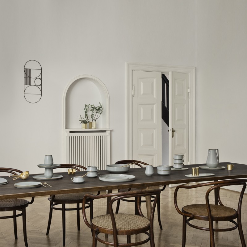 В коллекции Neu от Ferm Living совместили современный скандинавский стиль и ретро-дизайн, именно поэтому эта посуда быстро стала популярной. Все предметы коллекции изготовлены из керамики и покрыты серой глазурью. Эти изделия хорошо переносят тепловую обработку, а так же очищение в посудомоечной машине.