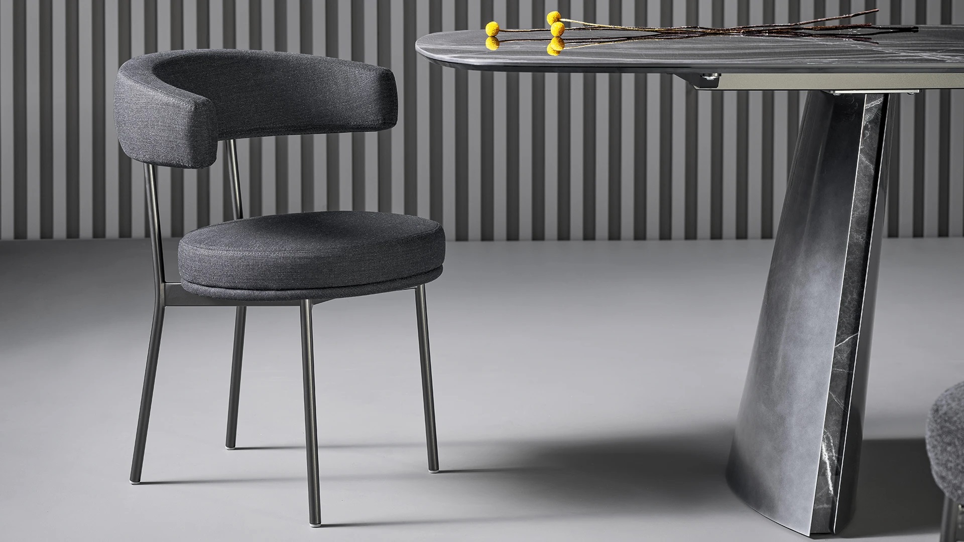 Стул Neuilly — это удачное слияние строгих линий и мягкой эргономики. Его конструкция строится на контрасте материалов: тонкая металлическая трубчатая основа выступает в роли прочного и лёгкого каркаса, а мягкие элементы сиденья и спинки обеспечивают высокий уровень комфорта.