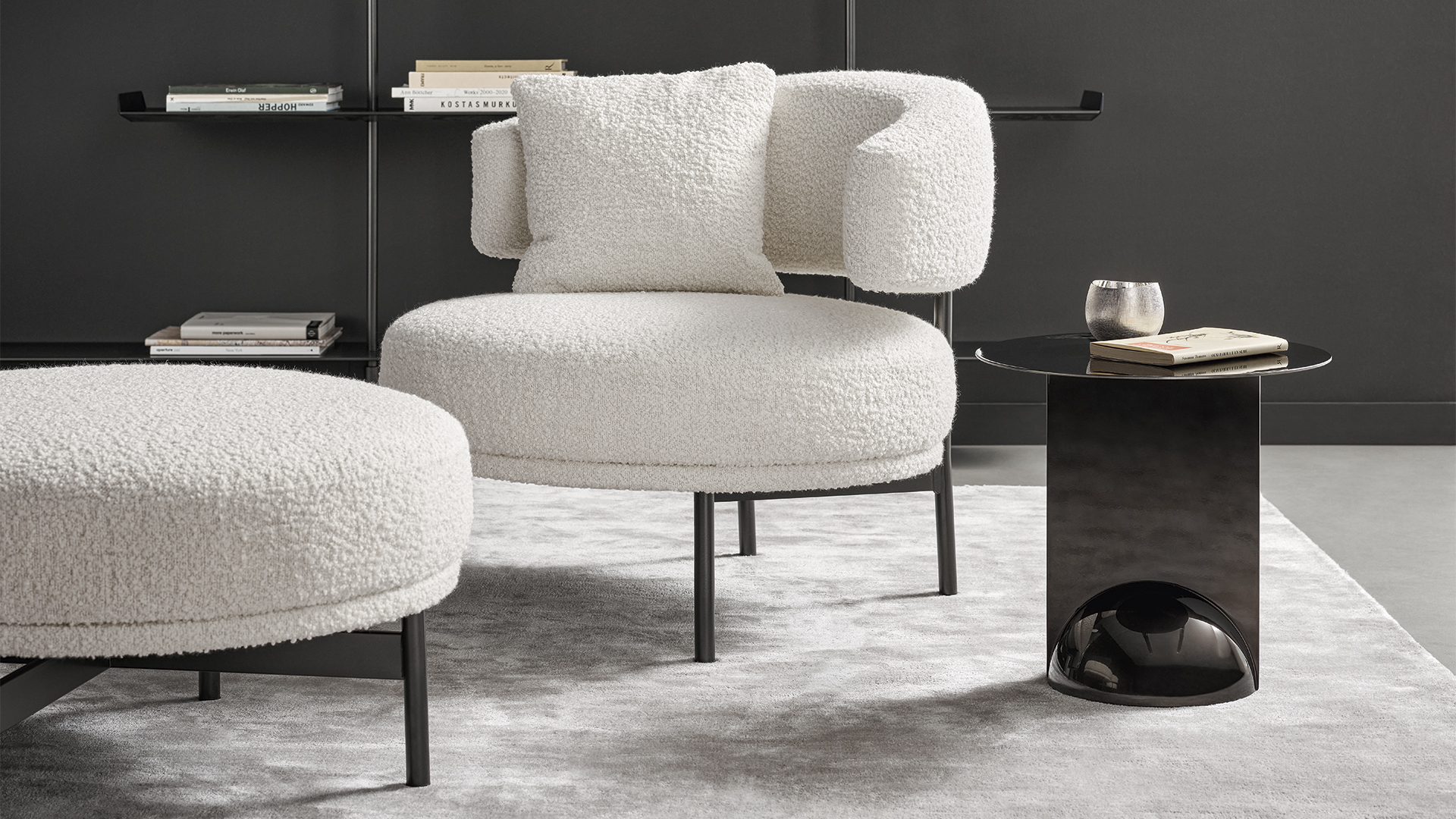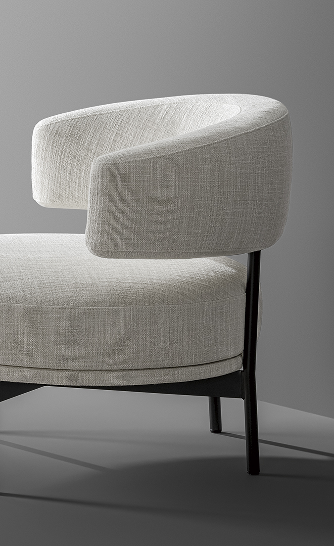Главной особенностью модели стал узнаваемый тонкий металлический каркас, который поддерживает объемные сиденье и спинку-подлокотник, словно приглашая вас в мягкие объятия. Полукруглая форма кресла усиливает ощущение защищенности и расслабленности, делая его идеальным местом для отдыха.