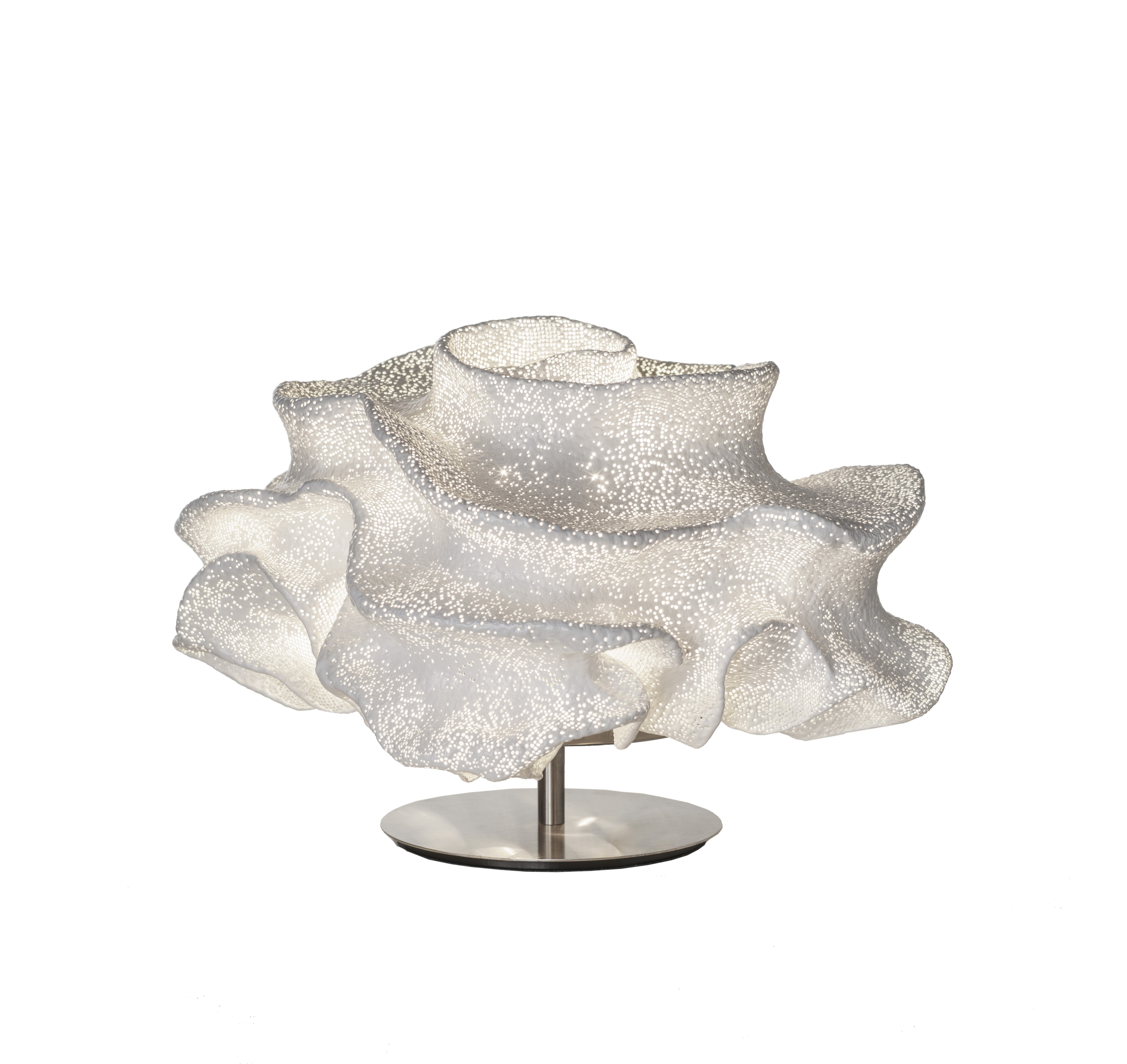 Настольный светильник Nevo, созданный талантливым дизайнером Артуро Альваресом, представляет собой удивительное сочетание технологичности и органической эстетики. Его главная особенность — окрашенная сетка из нержавеющей стали, которая благодаря ручной обработке приобретает неповторимые органические формы.