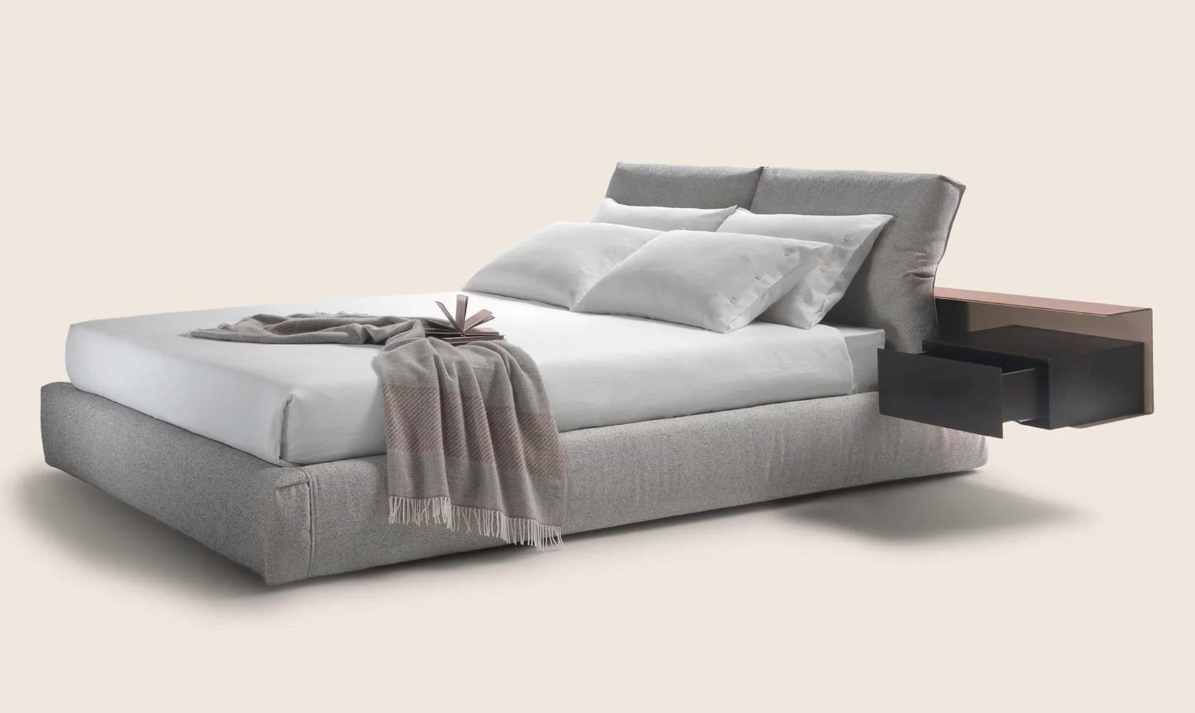 Мягкое объёмное основание и подушки изголовья создают комфортное пространство для отдыха. Подушки изголовья можно регулировать по наклону, что позволяет удобно устроиться в полулежачем положении для чтения или просмотра телевизора.