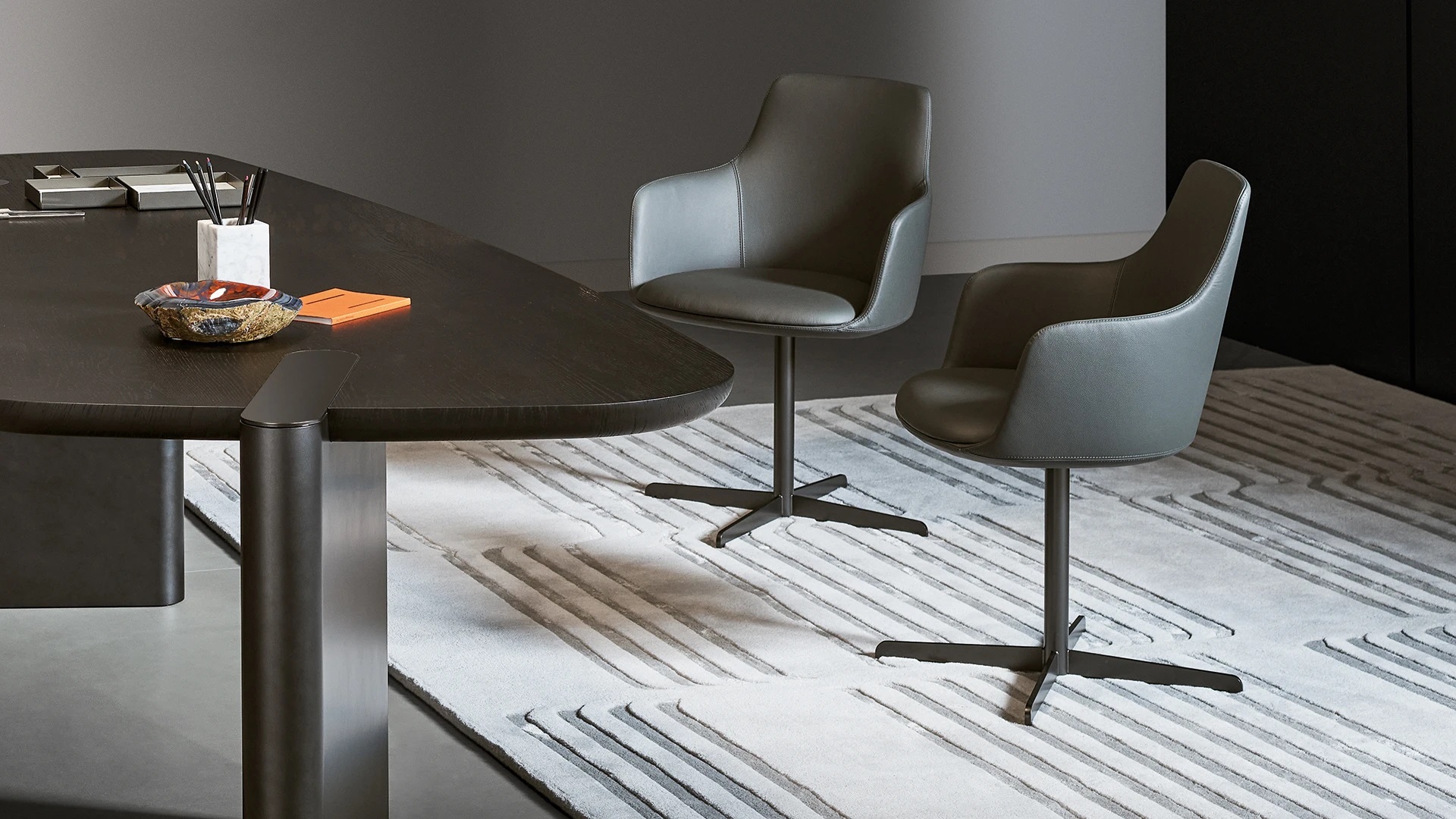 Это кресло разработано так, чтобы быть максимально удобным в условиях ежедневного использования, сохраняя при этом элегантный внешний вид. Newton доступно в нескольких вариантах отделки:
