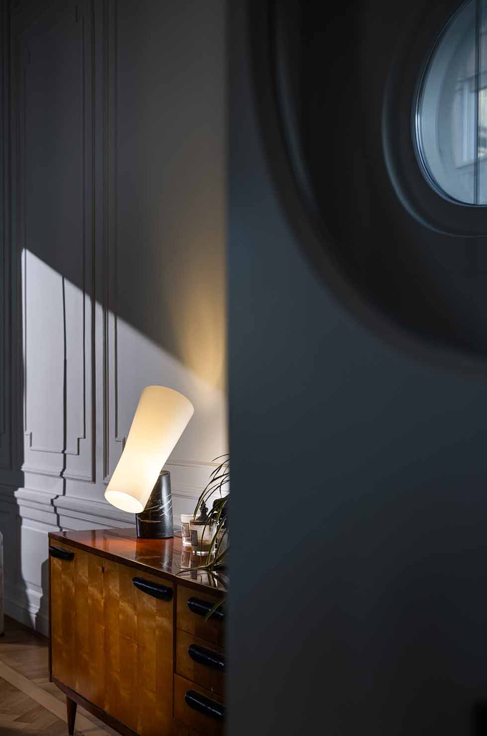 Декоративная лампа Nile — это скульптурный объект выдающегося характера, построенный на драматичном и элегантном контрасте. Тяжёлое и монолитное основание из цельного мрамора служит символическим якорем композиции. Его вес, холодная фактура и благородная прожилка олицетворяют прочность и вечность. На этой массивной платформе, словно парящий мыльный пузырь, покоится объёмный плафон из выдувного стекла. Каждый такой плафон уникален благодаря следам ручной работы — пузырькам воздуха и органичным неровностям, которые наполняют его теплом и душой.