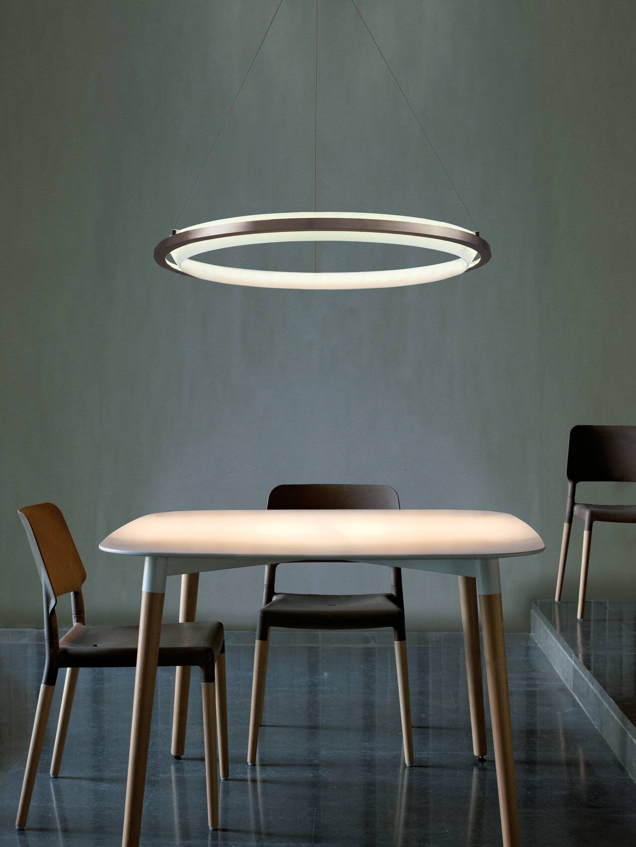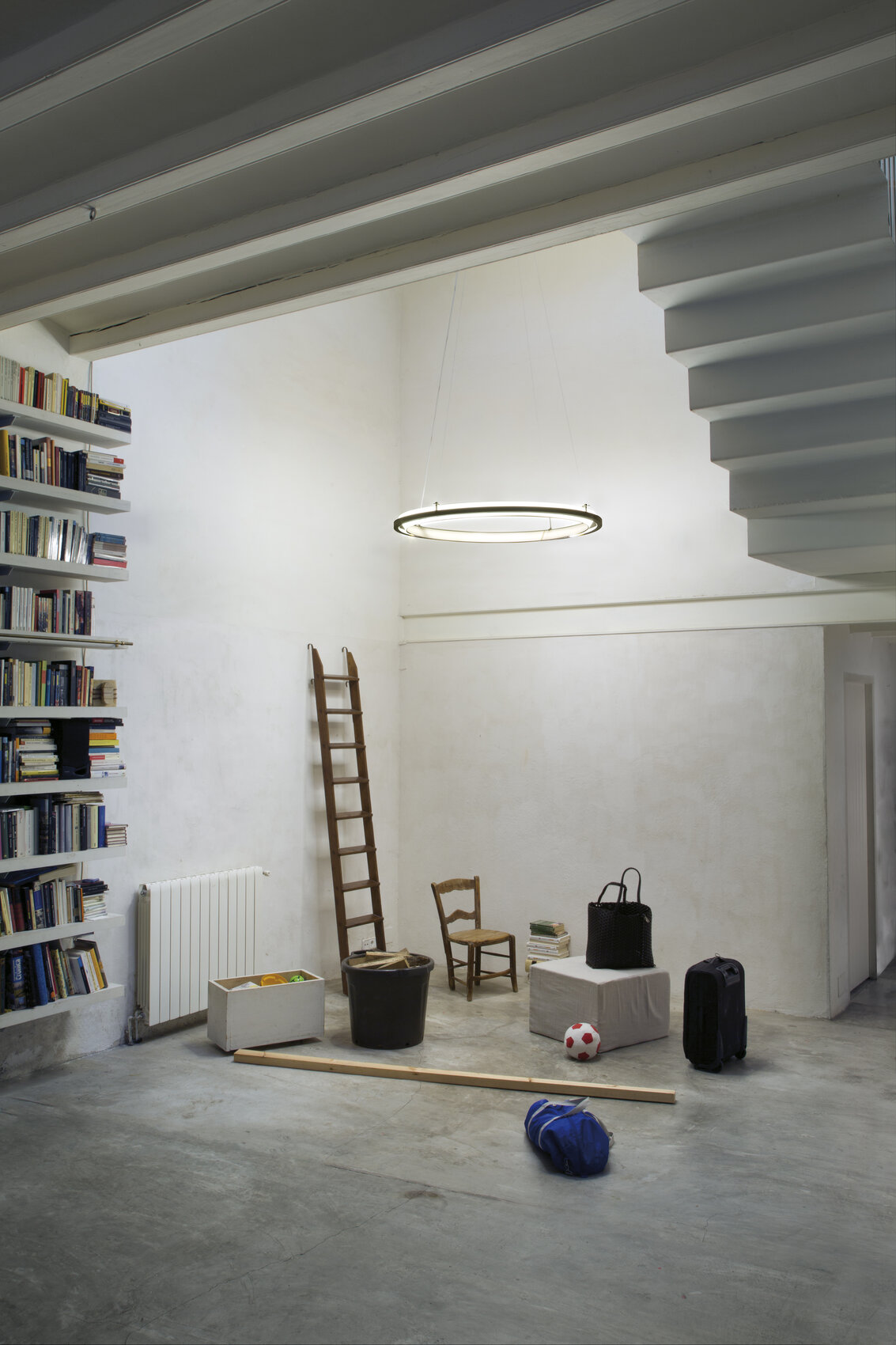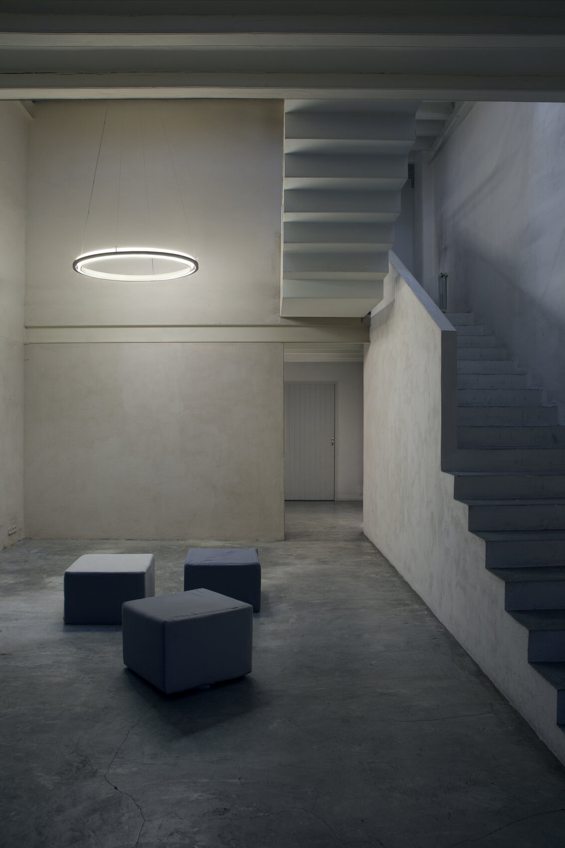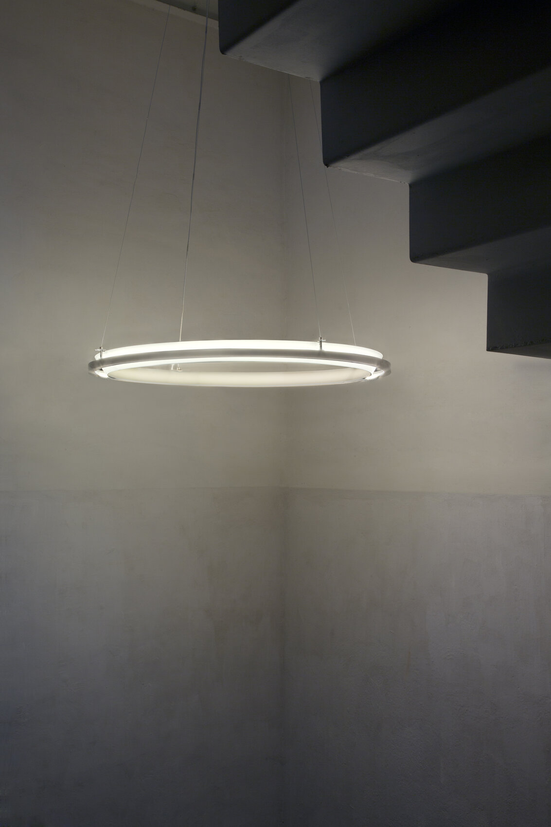 Подвесной светильник Nimba, разработанный известным дизайнером Антони Аролой, представляет собой оригинальное светящееся кольцо, словно парящее в воздухе. Название светильника происходит от слова «нимб» — ореола вокруг святых изображений, что-то видимое, но эфемерное.
