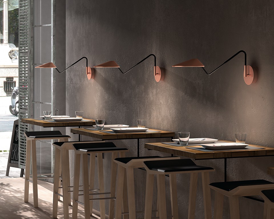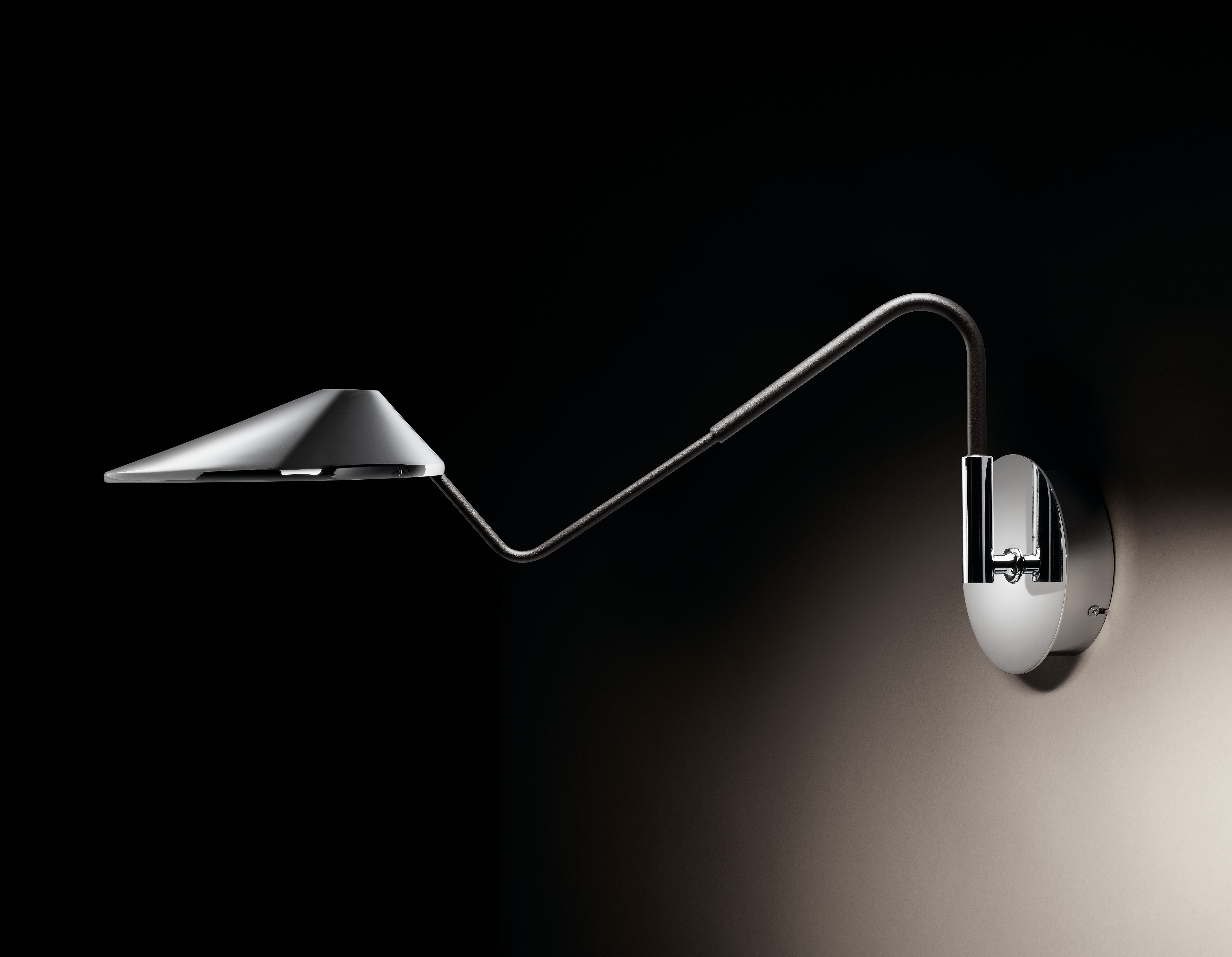 Non La A/03 — это конусообразный светильник с авангардным акцентом. Его асимметричная световая полость придаёт интерьеру лёгкость и динамику. Абажур выполненный из прочного алюминия с покрытием плакировкой или лаком, обеспечивает долговечность и эстетическую выразительность. Основание изготовленное из чугуна с угловатым дизайном, создаёт контраст между грубоватой текстурой и утончёнными линиями абажура.