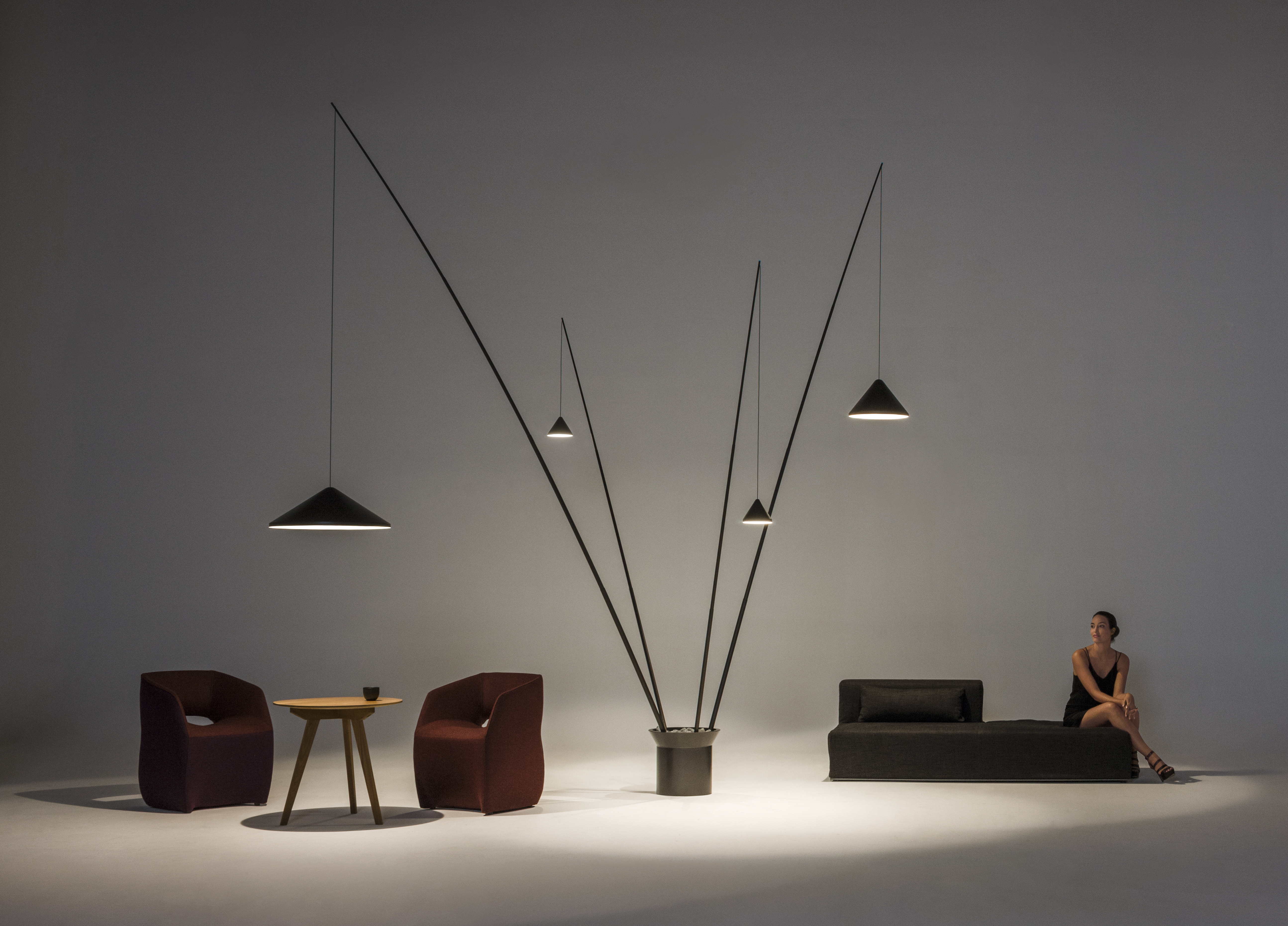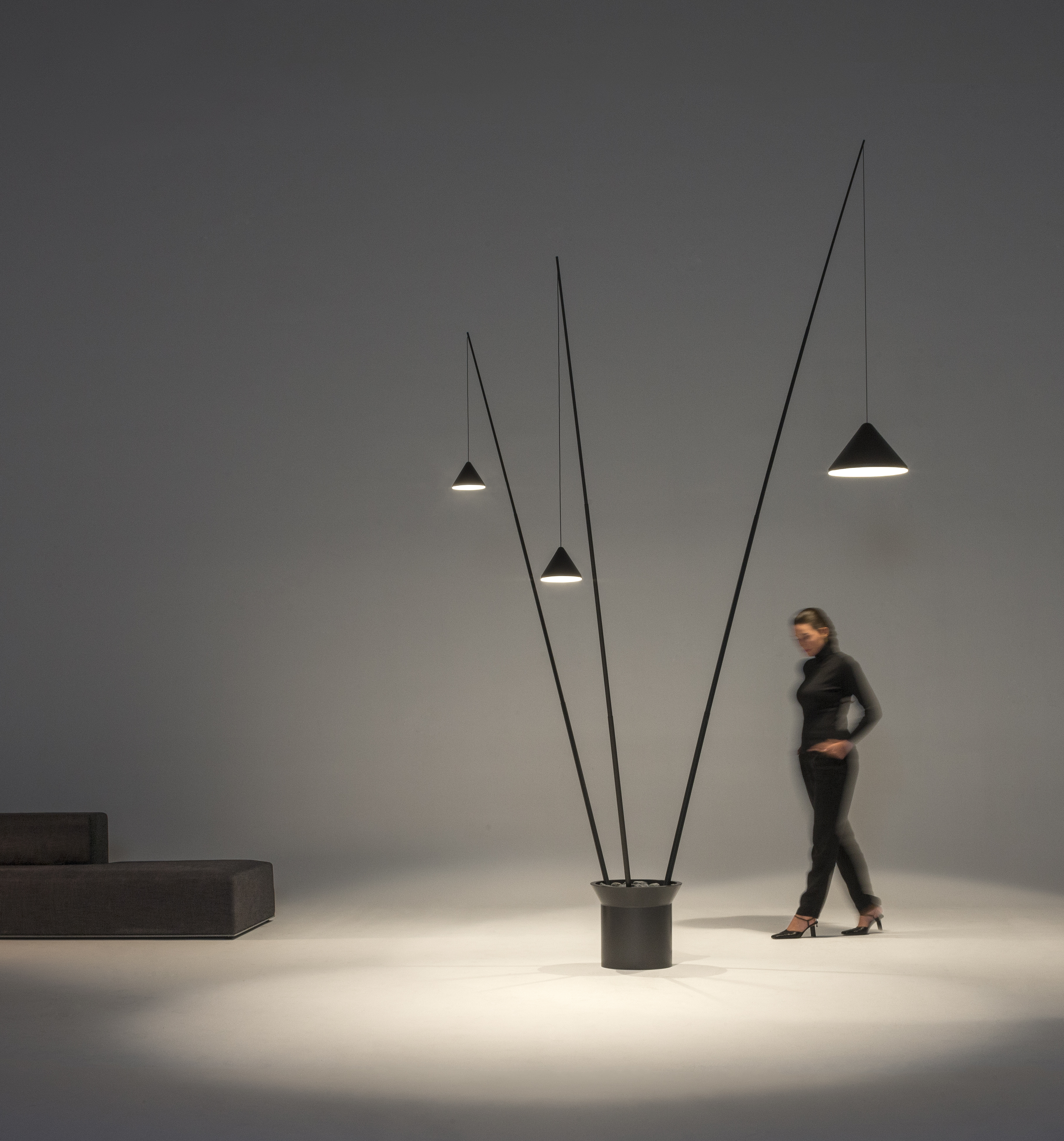 Напольный светильник North состоит из трех основных элементов: основания, стойки и абажура. Все компоненты выполнены раздельно в динамической системе регулируемых частей. Выступающие рычаги удерживают треугольные абажуры. Такая конструкция позволяет направлять свет точно туда, где он нужен. Светильник отличается модульной конструкцией. Каждый элемент можно регулировать независимо. Дизайн подчеркивает геометрические формы и функциональность. Светодиодные модули обеспечивают яркое направленное освещение. North идеально подходит для современных интерьеров. Конструкция позволяет создавать индивидуальные световые сценарии. Продукт сочетает эстетику с практической пользой. Металлические элементы обеспечивают прочность и устойчивость. Светильник становится стильным акцентом любого пространства.