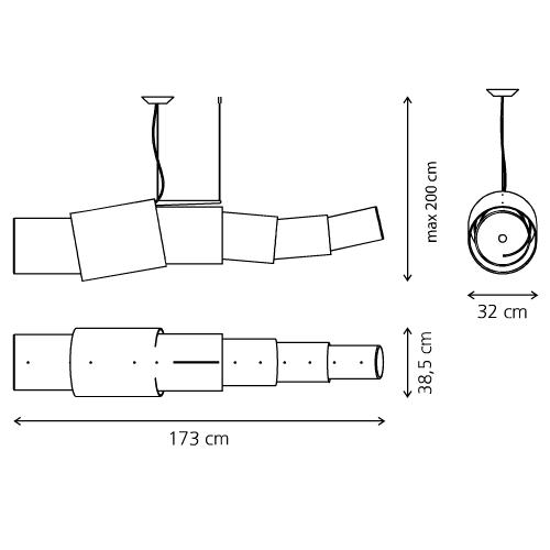 Дракон, символ вечности и власти в китайских традициях, создан дизайнером Микеле ди Лучи из стекла и света. Шесть подвижных цилиндрических форм расположенных вокруг источника света и специальные красные светофильтры (устанавливаются по желанию) делают Noto действительно похожим на летящего дракона. Светильник состоит из стальной конструкции и плафонов из дутого стекла. Используется линейный люминесцентный источник света G5, ЭПРА 2x80W.