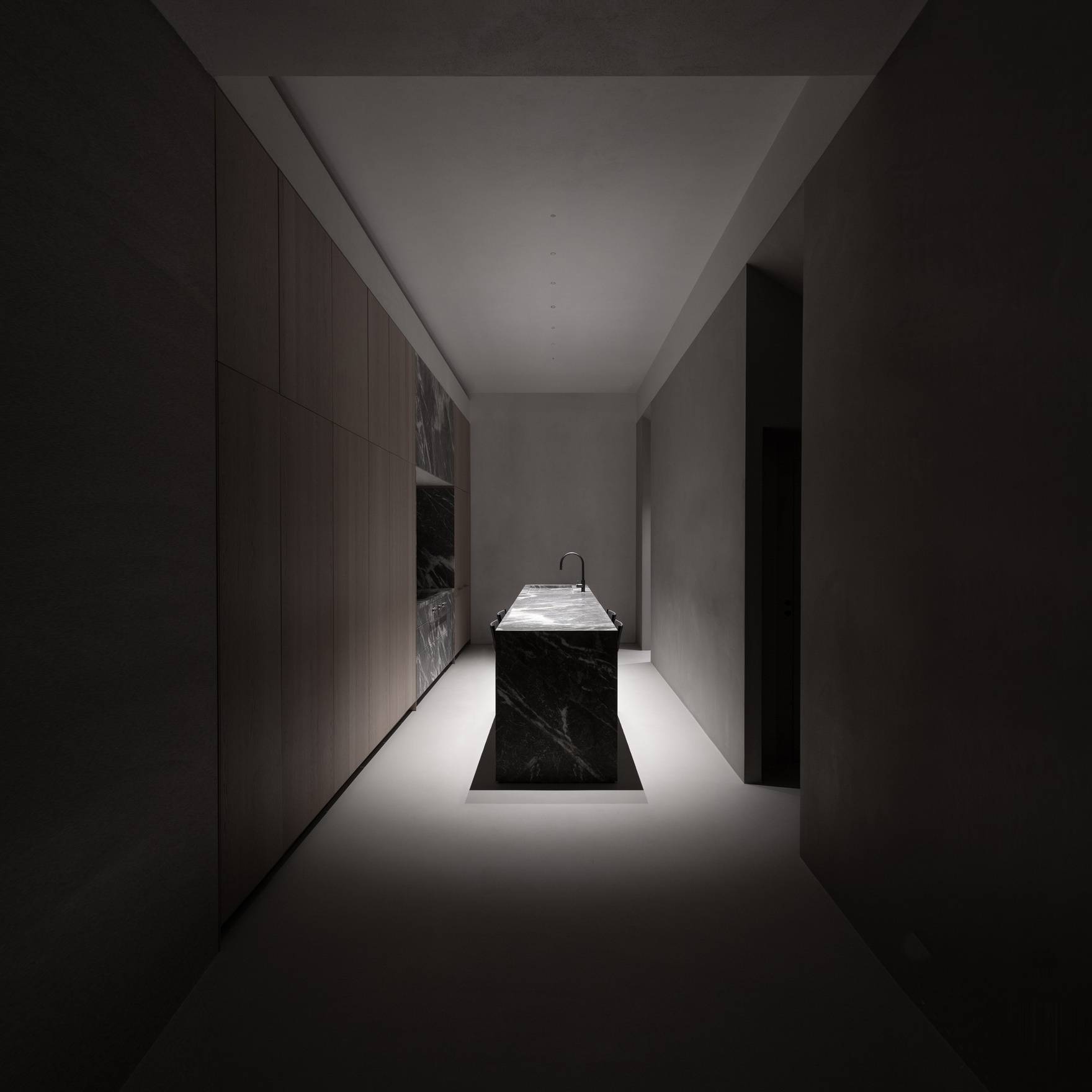 Встраиваемый светильник Nulla представляет собой изысканное и лаконичное решение для акцентного освещения. Его конструкция воплощает идею «света без источника», создавая эффект невидимого освещения. На потолке остаётся лишь небольшой чёрный круг, за которым скрыт встроенный светодиод и оптическая линза. Этот минималистичный дизайн придаёт интерьеру современный и утончённый вид.