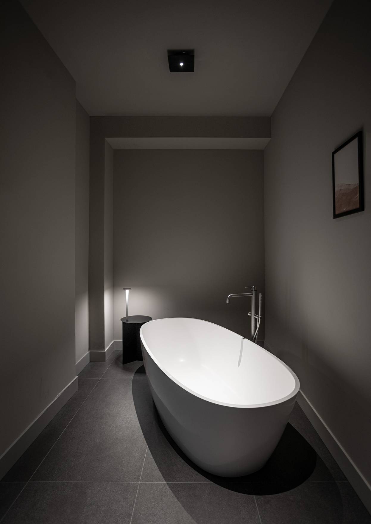 Корпус Nulla PL изготовлен из прочного металла с матовой белой отделкой. Такое покрытие не только придаёт светильнику изысканный внешний вид, но и создаёт эффект незаметности, благодаря чему он гармонично вписывается в пространство, не привлекая лишнего внимания. Однако его форма и материал делают светильник выразительным архитектурным элементом, способным добавить интерьеру особый шарм и утончённость.