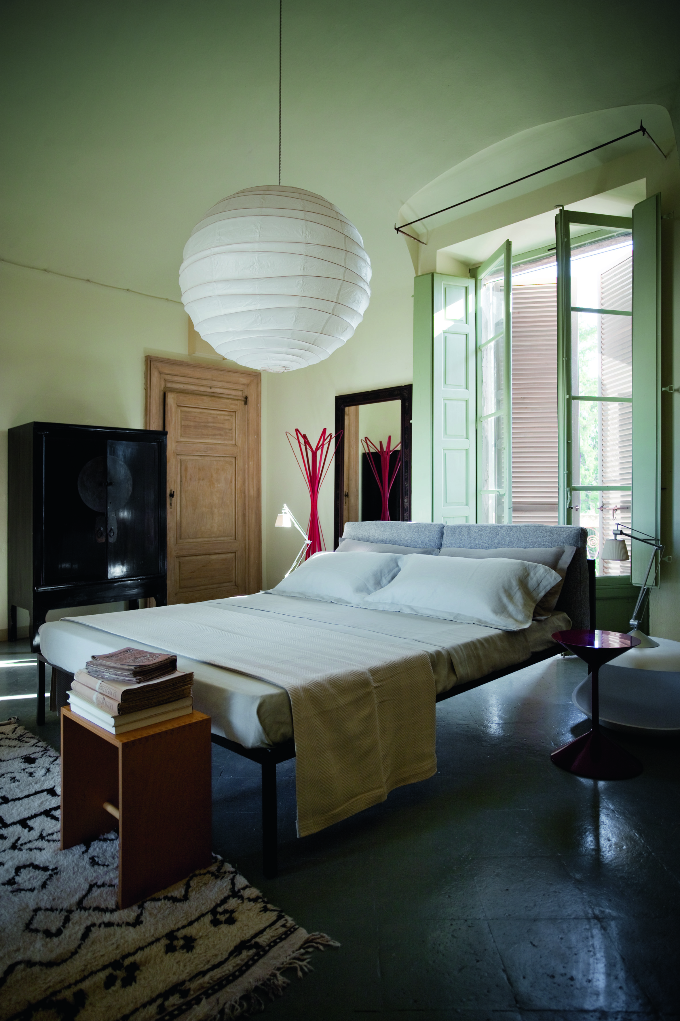 Кровать Nyx создана студией Emaf Progetti специально для фабрики Zanotta. Разборная стальная конструкция доступна в двух цветах: белый и чёрный. Ламели выполнены из натурального бука. Съемная обивка кровати может быть изготовлена из кожи или ткани. Все возможные цвета и отделки кровати уточняйте у менеджеров или в PDF инструкции.