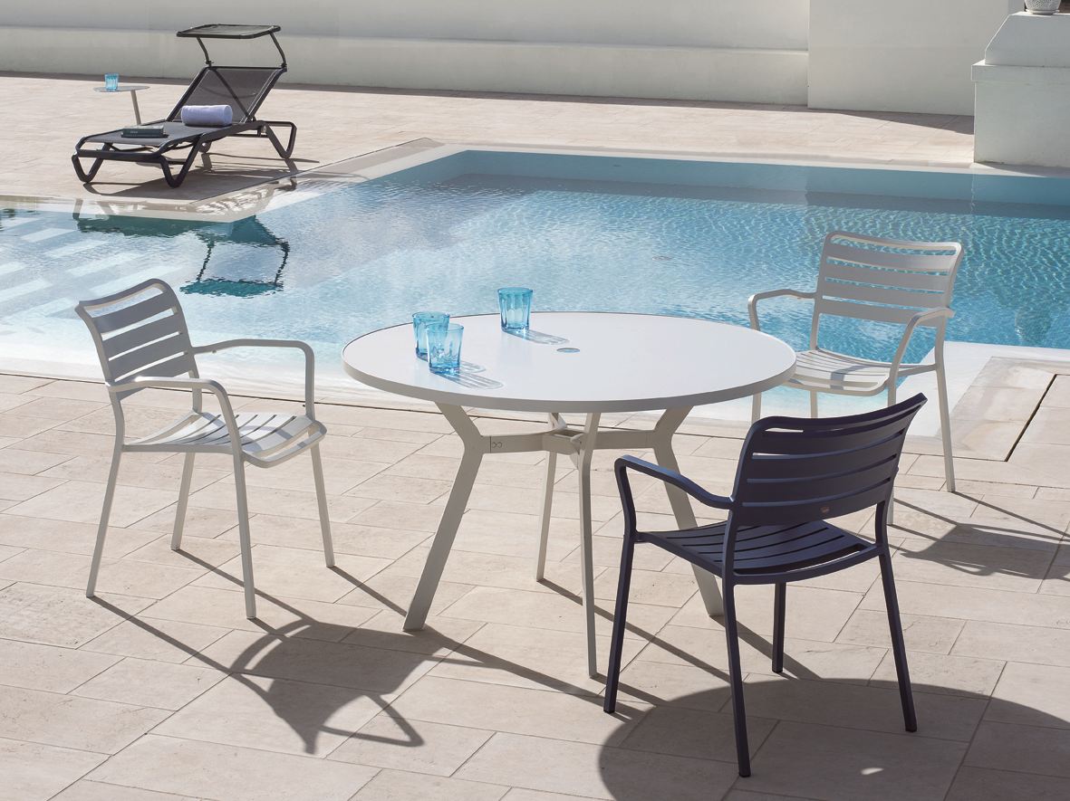 Ocean — элегантная и функциональная коллекция от фабрики Ethimo. Модель изготавливается из алюминия в белом или сером цвете. В коллекцию Ocean входят столы, стул, кресло и шезлонг. Дополнительно можно приобрести чехол от дождя. Более подробную информацию можно уточнить у менеджера.