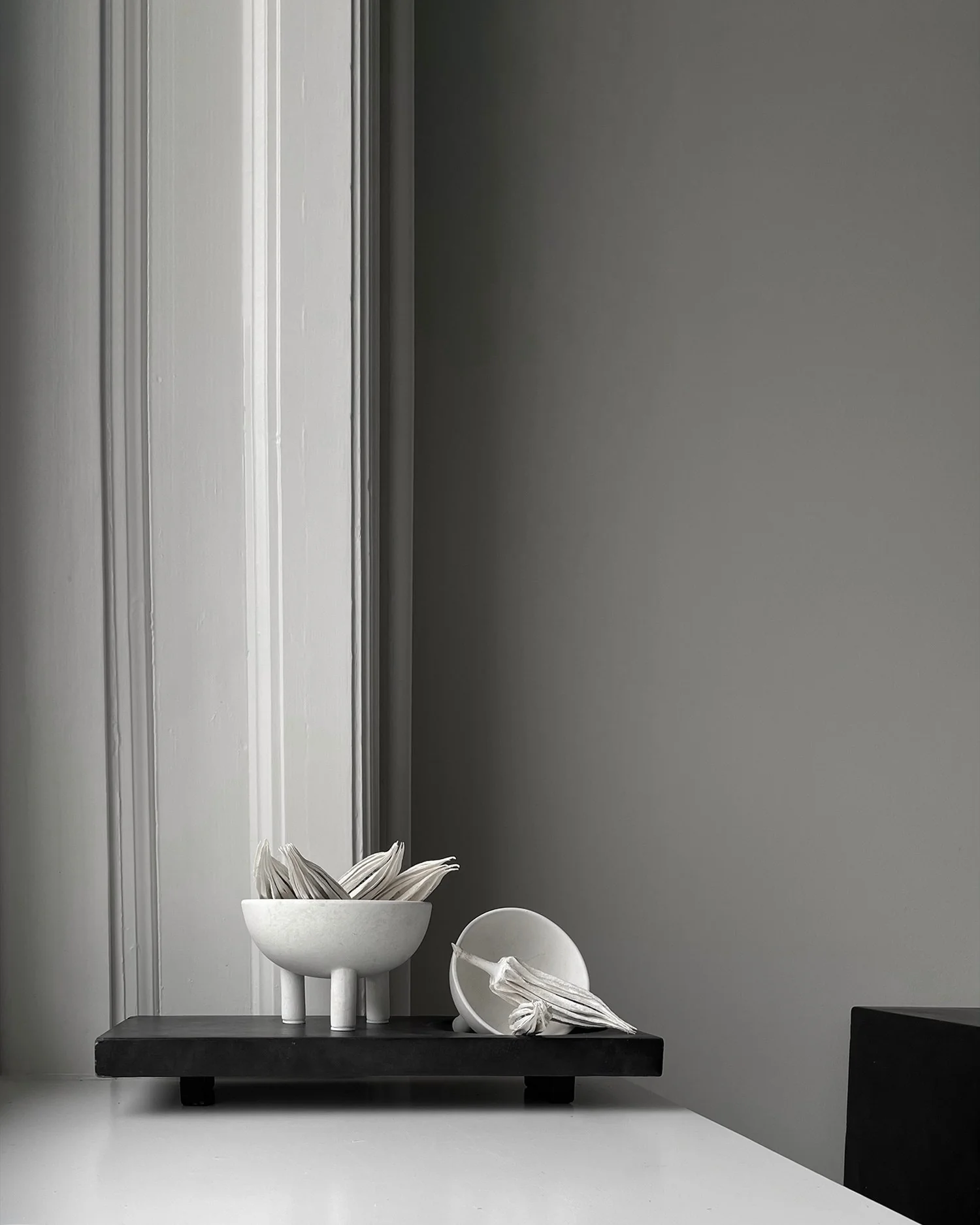 Основным материалом для изготовления подноса Oka стал армированный фибробетон. Этот выбор не только придаёт изделию прочность и долговечность, но и создаёт уникальную текстуру, которая придаёт подносу особую визуальную привлекательность. Фибробетон также позволяет достичь выразительной скульптурной формы, которая делает поднос не просто практичным элементом сервировки, но и самостоятельным произведением искусства.