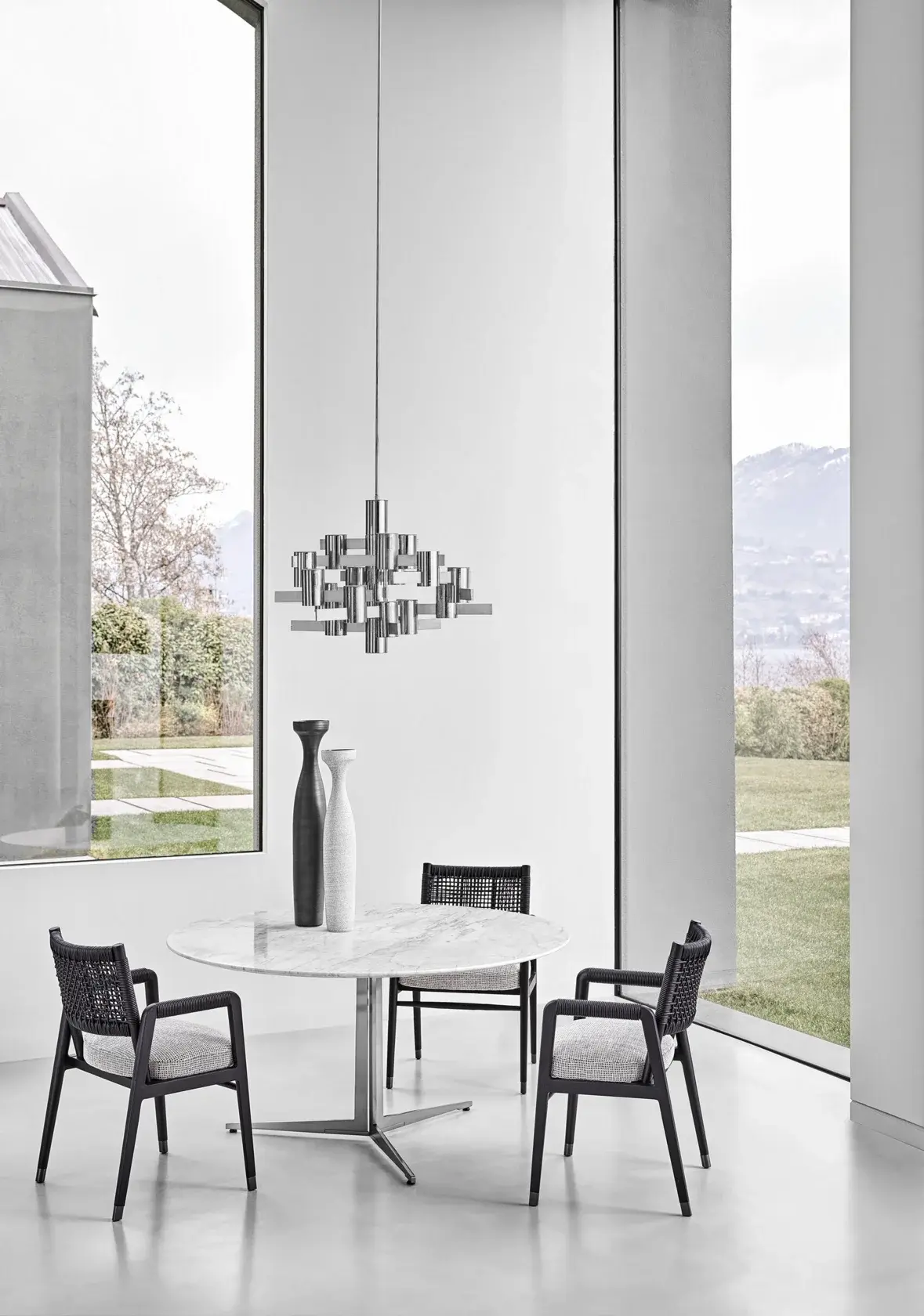 Универсальность этих моделей позволяет им идеально сочетаться с любым столом из коллекции Flexform. Это может быть массивный обеденный стол в классическом стиле или современный минималистичный кофейный столик.