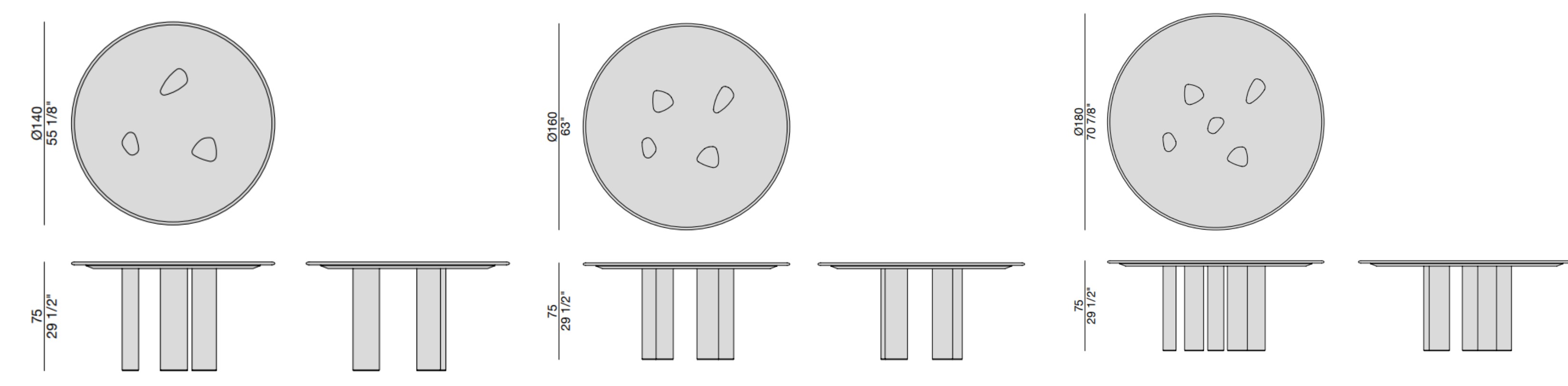 Oswood Tondo – это не просто предмет мебели, а скульптурный объект, который преображает пространство. Его округлая форма способствует непринужденному общению, а сочетание фактур делает стол центром внимания в интерьере. В зависимости от размера модель предлагает разную конфигурацию ножек. Компактный вариант диаметром 140 см опирается на три опоры. Это создаёт ощущение лёгкости. Стол на 160 см имеет четыре ножки. Они обеспечивают устойчивость и баланс. Роскошная версия 180 см оснащена пятью ножками. Это придаёт композиции динамику и позволяет с комфортом разместить большую компанию.