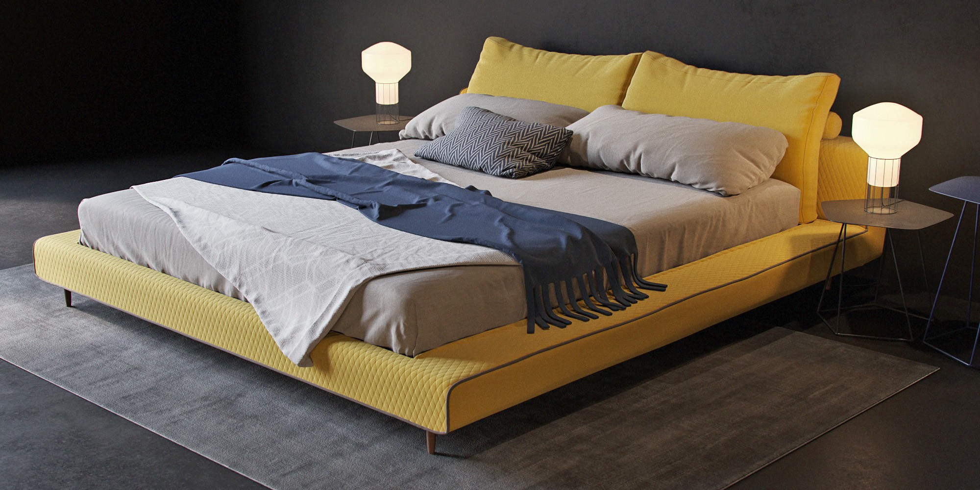 Owen — современная двуспальная кровать от фабрики Bonaldo. Основание кровати сделано из дерева и ДСП. Обивка кровати полностью съёмная и может быть выполнена из текстиля или кожи. В качестве наполнителя использован полиуретан. Металлические ножки и обивка доступны в различных цветовых вариантах. Модель представлена в нескольких размерах. Более подробную информацию можно уточнить у менеджера.