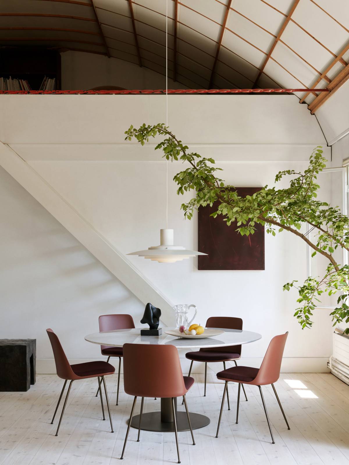 P376 — это шедевр оптики и формы, воплощающий принцип «свет без теней». Его пять концентрических абажуров из штампованной стали рассеивают свет так, чтобы ни одна лампочка не была видна — только мягкая, равномерная, обволакивающая гамма.