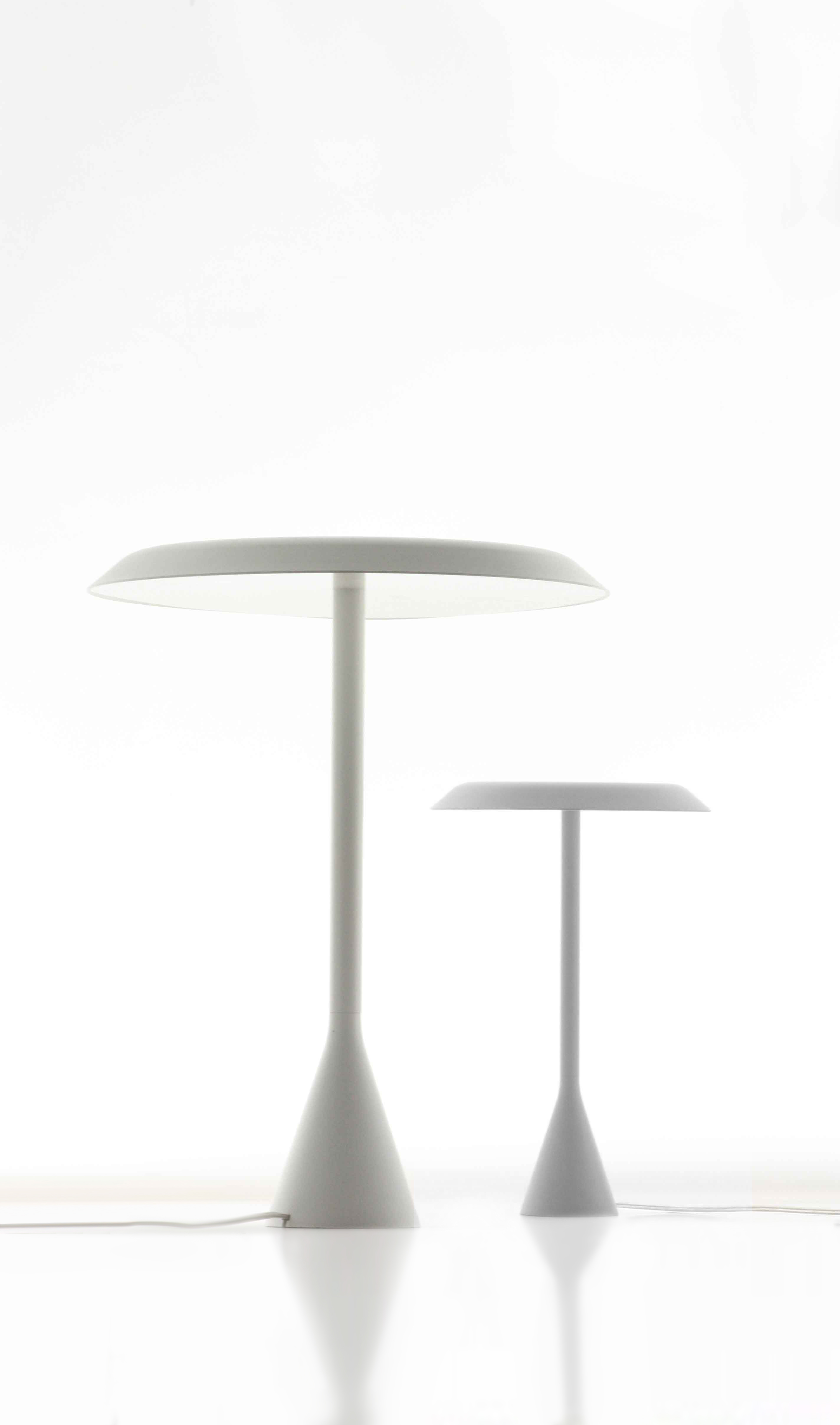 Panama - настольная лампа со светодиодными источниками для широкомасштабного освещения, подходит для домашних и рабочих мест. У светильника алюминиевая структура и рассеиватель из поликарбоната с антибликовым покрытием. Лампа доступна в двух цветах: белый или черный.