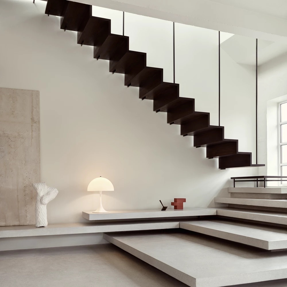 Panthella 400 легко становится центральным элементом интерьера — в гостиной, у кресла или в спальне. Благодаря лаконичному дизайну и вневременной эстетике, он гармонично вписывается в современные, скандинавские и лофт-пространства. Светильник эффектно смотрится как в одиночной установке, так и в композиции с другими моделями из серии — настольными или подвесными светильниками.