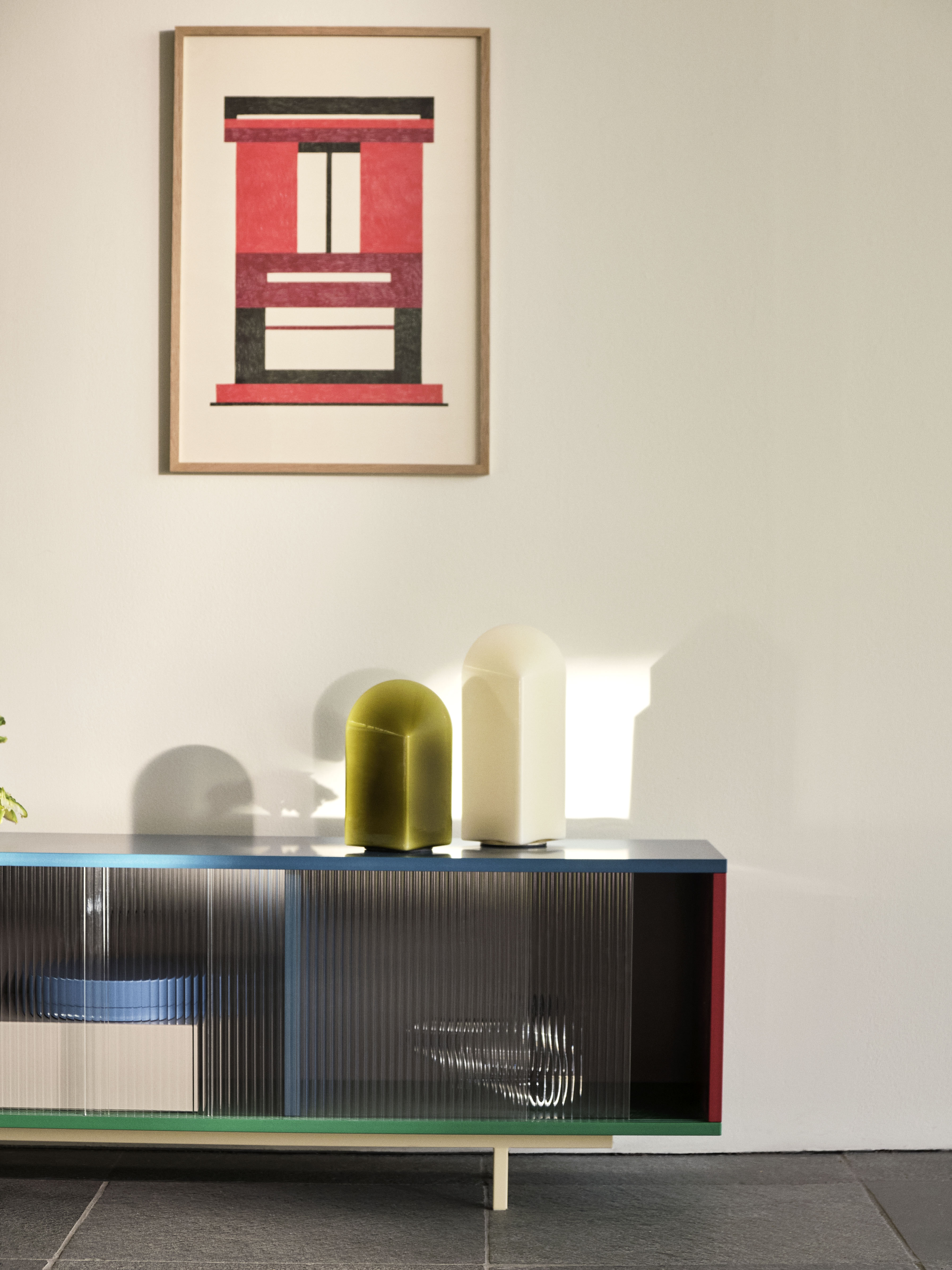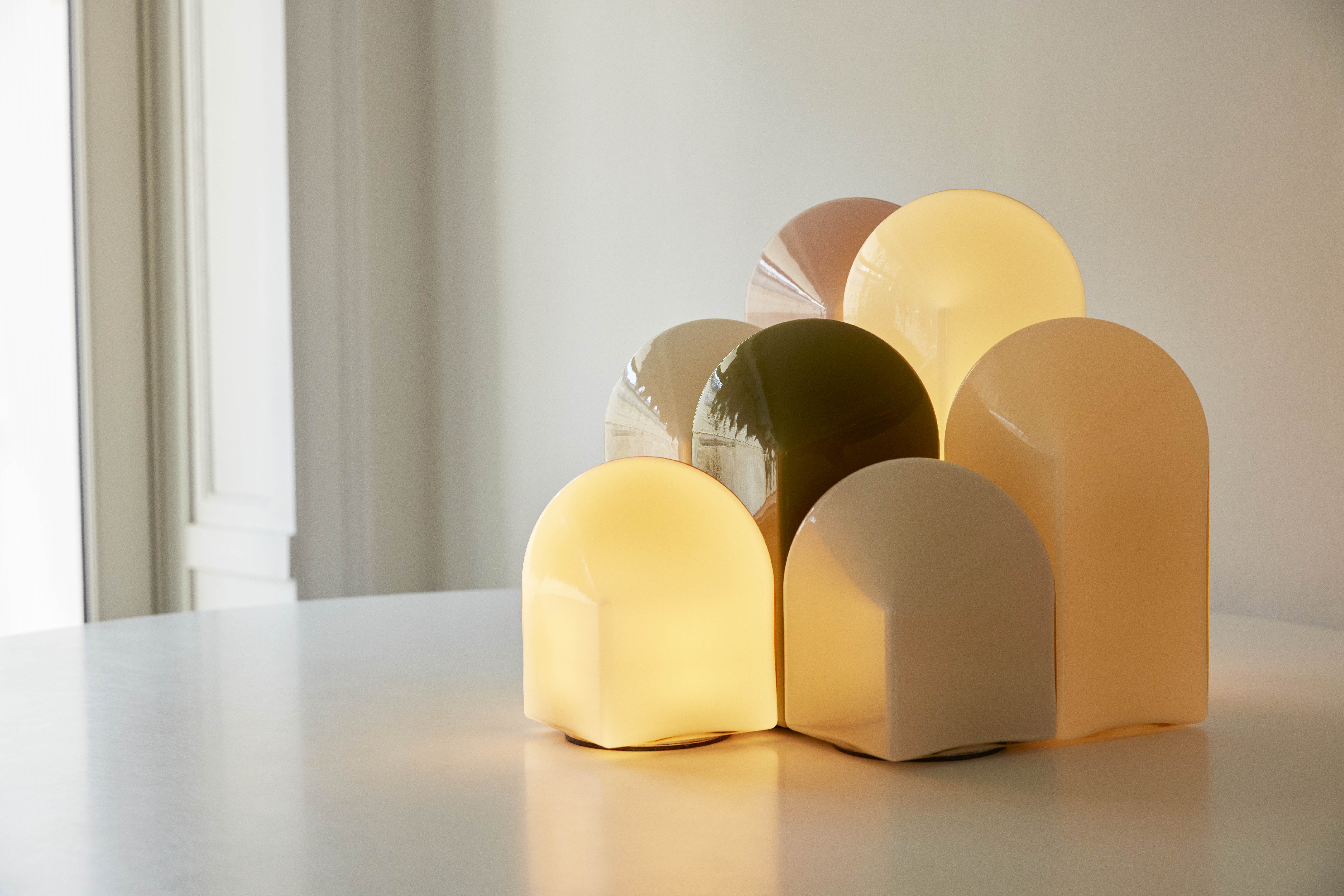 Настольная лампа Parade Table Lamp — это произведение дизайнерского искусства, созданное Виолой Хейн-Йонсен и Йонасом Трампедахом. Она представляет собой скульптурную лампу с выразительной геометрической формой. Эта форма уникальна тем, что её визуальное восприятие меняется в зависимости от угла поворота лампы.