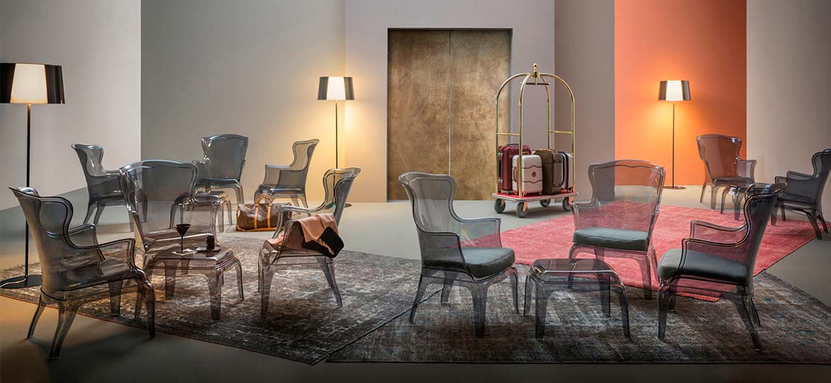 Коллекция Pasha состоит из кресла и пуфа. Благодаря столешнице пуф превращается в кофейный столик. Пуф Pasha изготавливается из полированного поликарбоната в четырех вариантах цвета: белый, прозрачный, дымчатый и черный. Модель можно использовать на улице, благодаря использованию специальных влагостойких материалов. Детали уточняйте у менеджеров или в PDF инструкции.