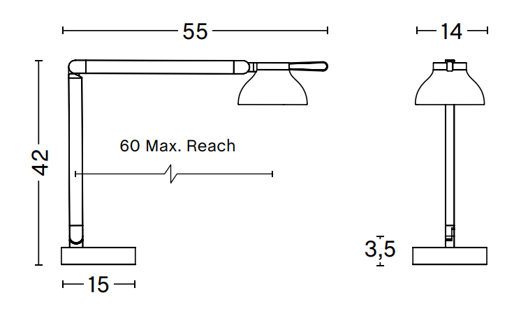 Конструктивно лампа воплощает принцип «умная простота». Стальная ножка и алюминиевый кронштейн образуют надёжную систему. Она позволяет легко менять направление света.