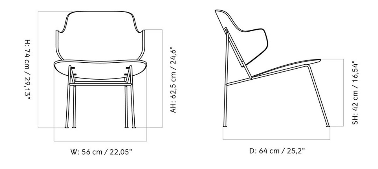 Сиденье и спинка кресла выполнены из дерева. Доступны два варианта отделки: Oiled Natural Oak и Oiled Walnut. Первый вариант подчеркивает естественную красоту дуба. Второй вариант придает креслу теплоту и насыщенность.