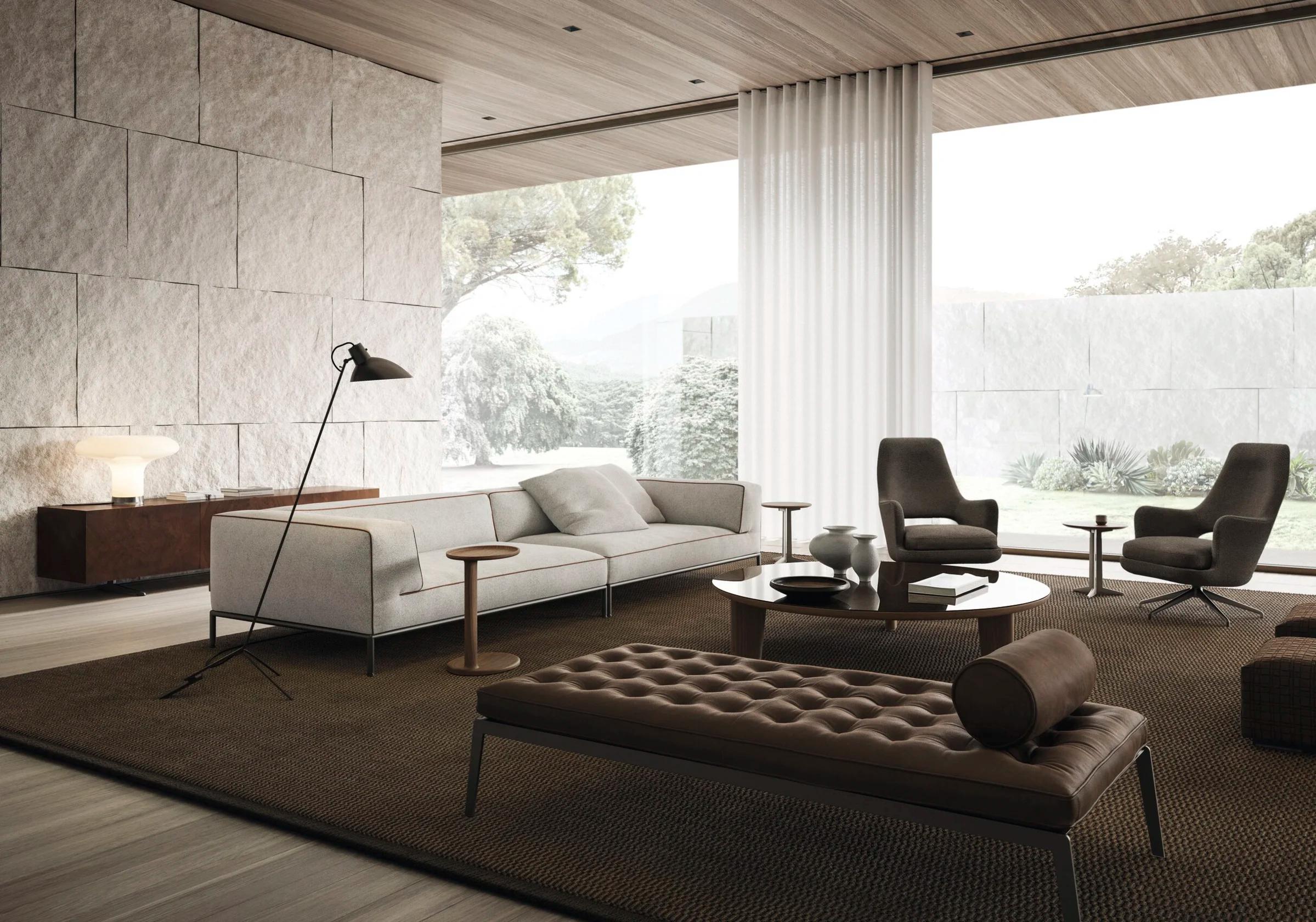 Perry Up предлагает широкие возможности для персонализации. Модульная система позволяет составлять компактные линейные композиции или масштабные ансамбли. Диван легко адаптируется под любые пространства. Универсальность дизайна подчеркивается разнообразием вариантов отделки. Универсальность дизайна подчеркивается разнообразием вариантов отделки — от благородных тканей до роскошной кожи из коллекции Flexform. Цветовые решения могут быть выдержаны в единой гамме или построены на контрасте, например, за счет декоративной окантовки из репсовой ленты или экокожи.
