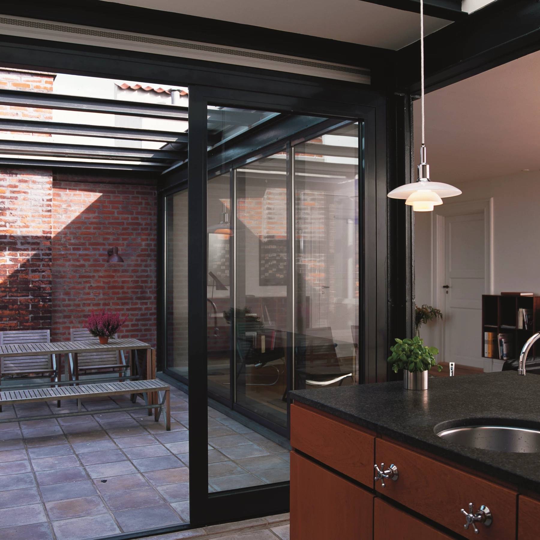 PH 3/2 — один из так называемых гибридных моделей. Он сочетает верхний отражатель диаметром около 30 см (по системе обозначений PH — «3») с промежуточным и нижним отражателями от модели 2/2 (с диаметром около 20 см). Такое решение было разработано для того, чтобы можно было подвешивать светильник на меньшей высоте, сохраняя при этом пропорции и эффективность светораспределения — идеально для современных интерьеров с умеренной высотой потолков.