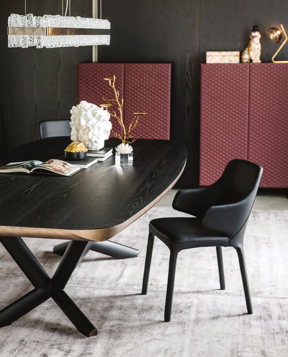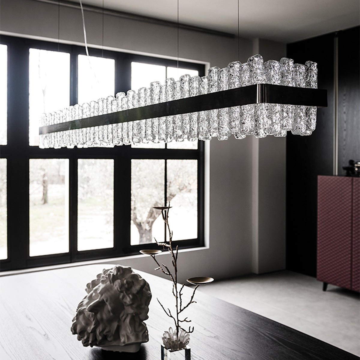 Светильник Phoenix представляет собой сценографический элемент, придающий современной гостиной утонченный и продуманный стиль. Модель доступна в двух вариантах: вытянутый прямоугольный и круглый, что позволяет гармонично сочетать их с соответствующими формами обеденных или журнальных столов.