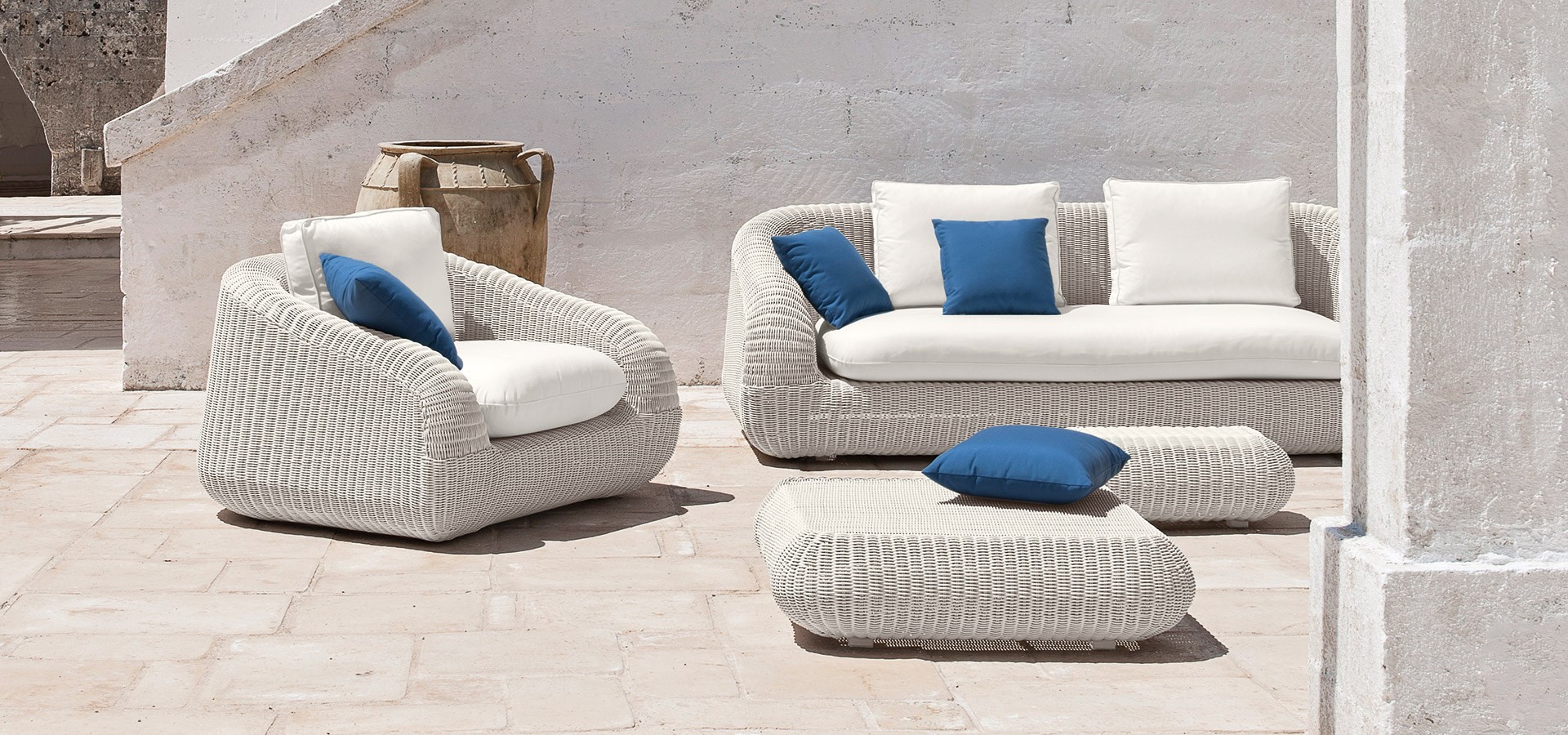 Phorma — удобное кресло от фабрики Ethimo. Основание модели изготавливается из волокна Etwick в белом или коричневом цвете. В стоимость включена мягкая подушка из акрила. В коллекцию Phorma также входит диван. Дополнительно можно приобрести чехол от дождя. Более подробную информацию и доступные расцветки можно уточнить у менеджера.