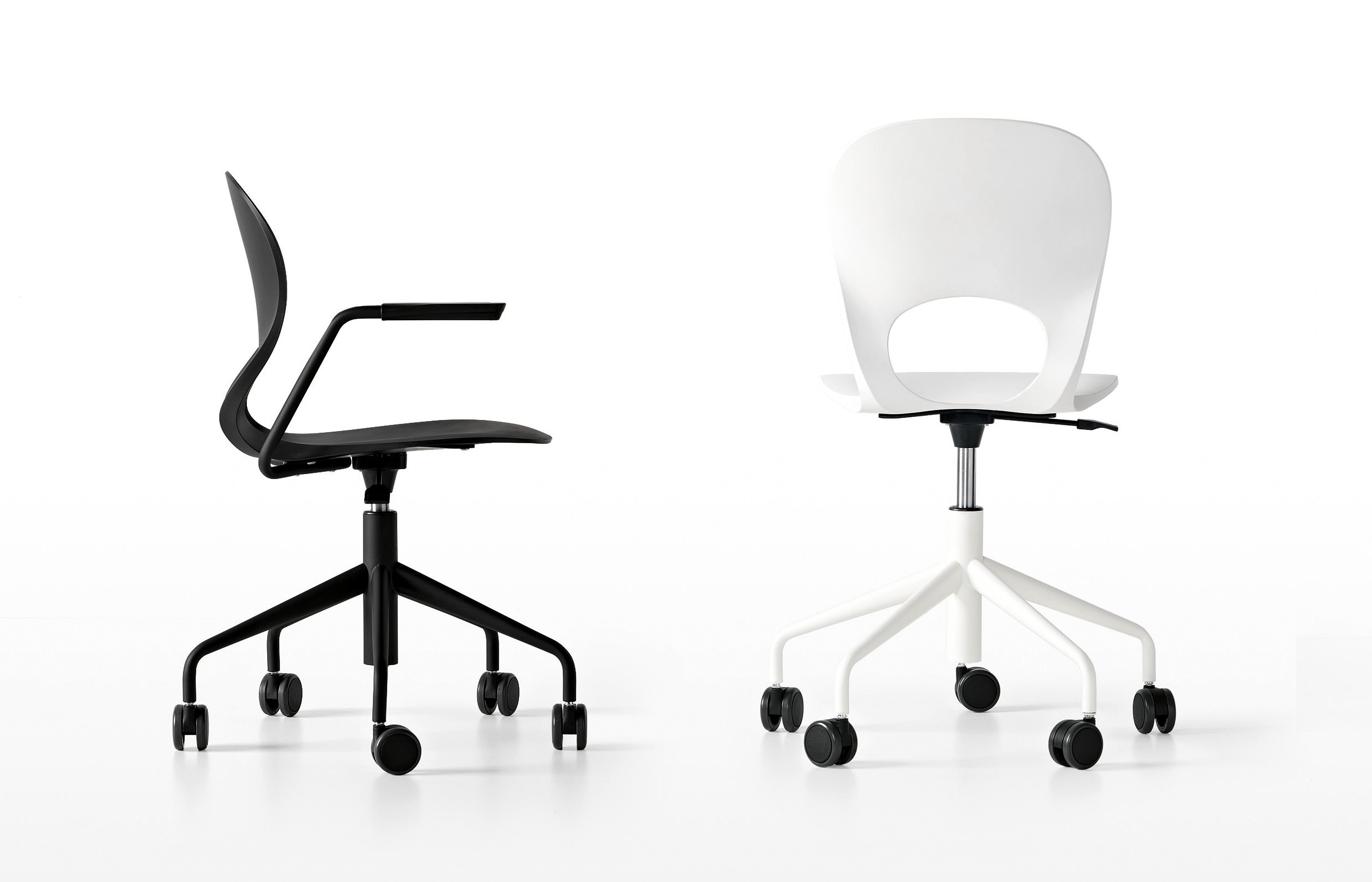 Основание стула Pikaia изготавливается из полированного или покрытого лаком металла в трех вариантах цвета: черный, белый или бежевый. Сидение и спинка выполняются из полиуретана в четырех вариантах цвета: черный, белый, красный или бежевый. Доступно две модели стула: с подлокотниками или без них. Основание бывает в трех вариантах исполнения: четыре ножки, салазки или ролики. Подробнее о данной модели уточняйте у менеджеров или в PDF инструкции.