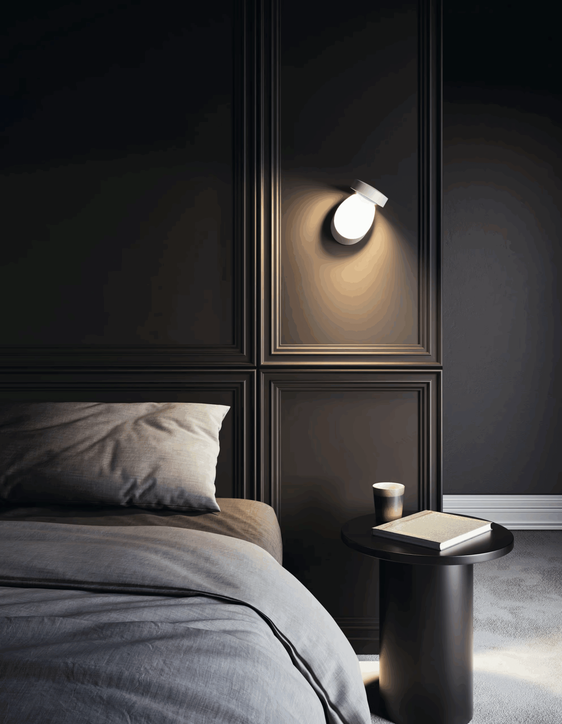 Pin-Up доступен в двух цветовых температурах: теплый (2700 К) и холодный (3000 К). Свет рассеивается через выпуклую хрустальную линзу, предотвращая блики. Благодаря простоте и удобству использования, светильник идеально подходит для прикроватных зон, лестниц, коридоров и стен гостиной.