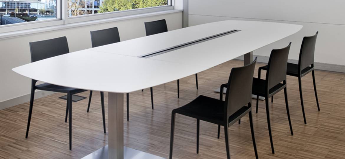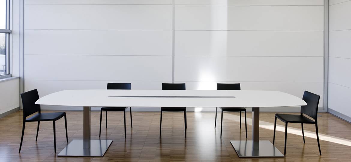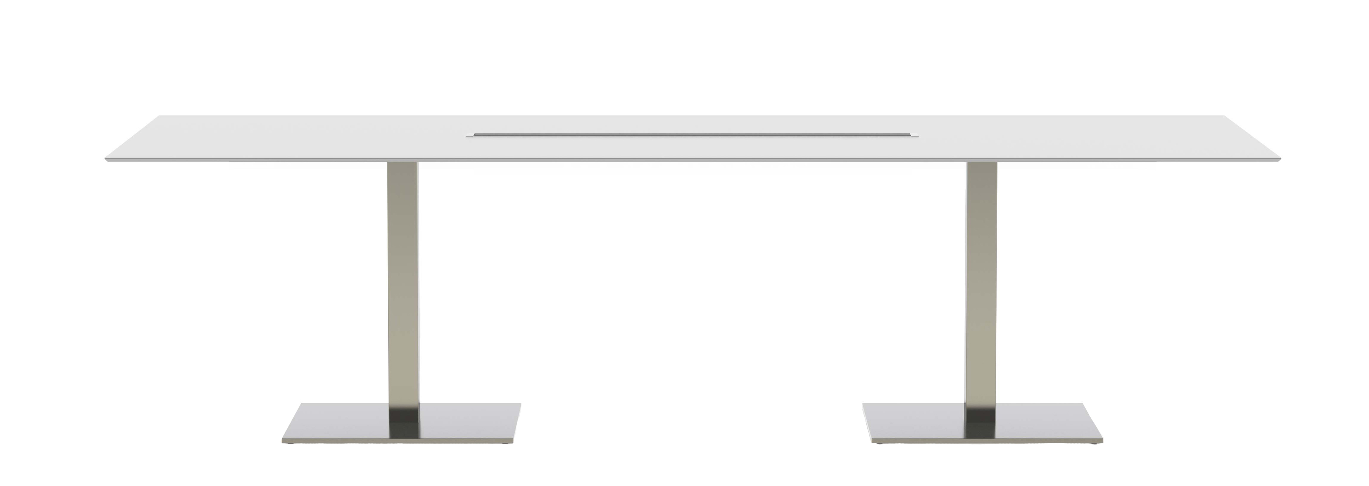 Plano — это коллекция офисных столов различных размеров. Столешница изготавливается из ламината в белом цвете и представлена в прямоугольной форме или с закругленными краями. Ножки выполняются из сатинированной нержавеющей стали. Доступно два вида основания ножек: круглой или квадратной формы. Также доступно две версии стола: со специальным отверстием для проводов или без него. Детали уточняйте у менеджеров или в PDF инструкции.