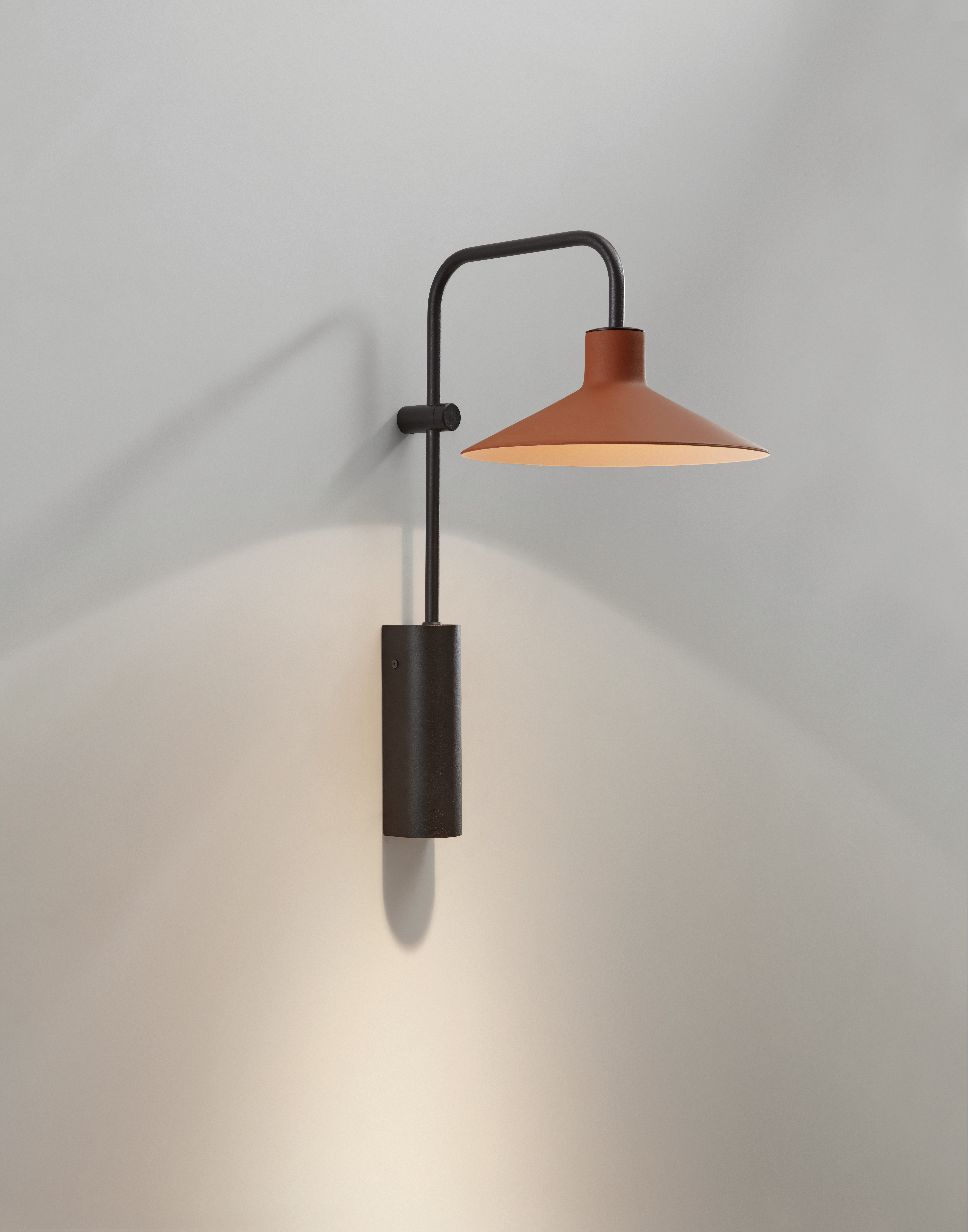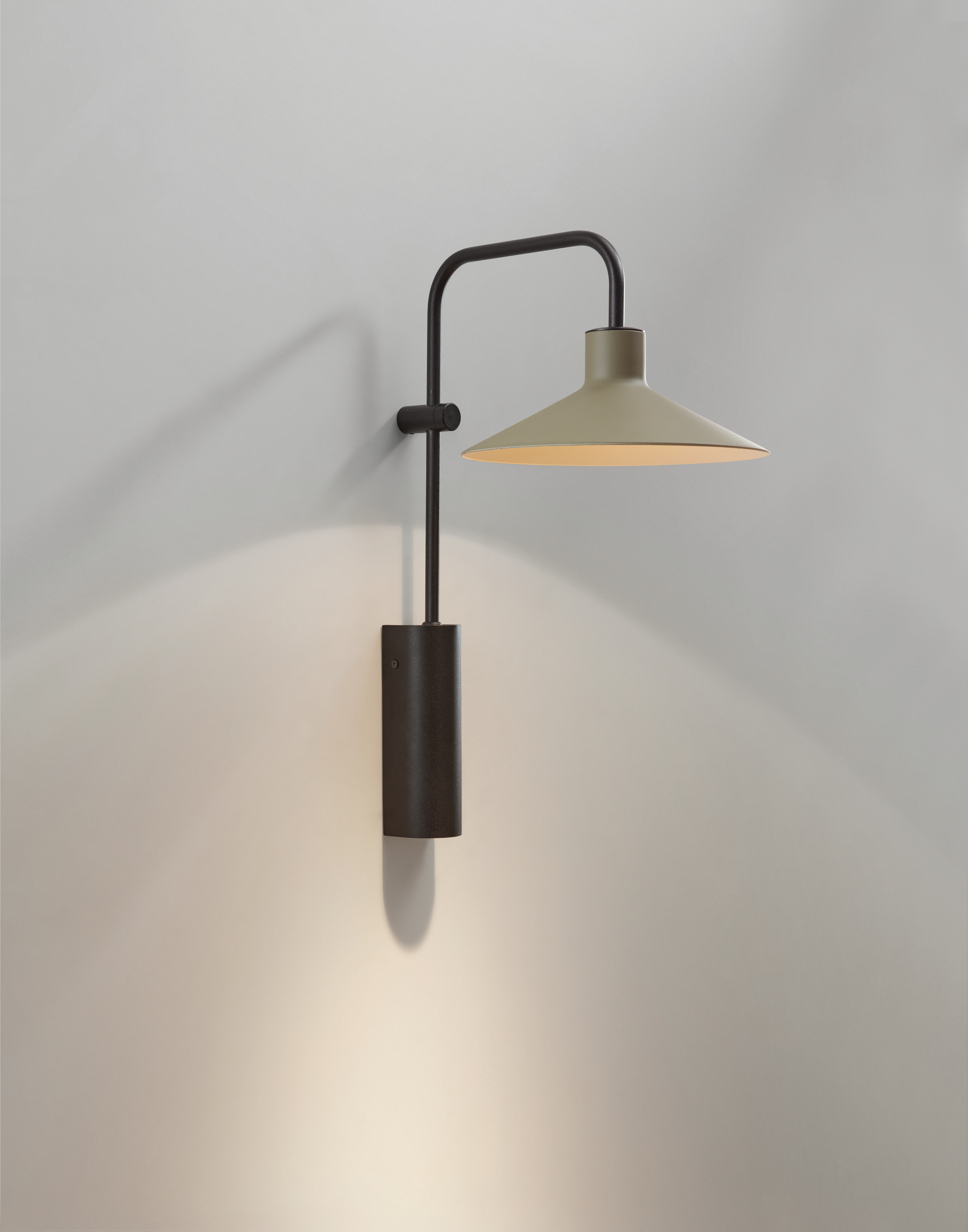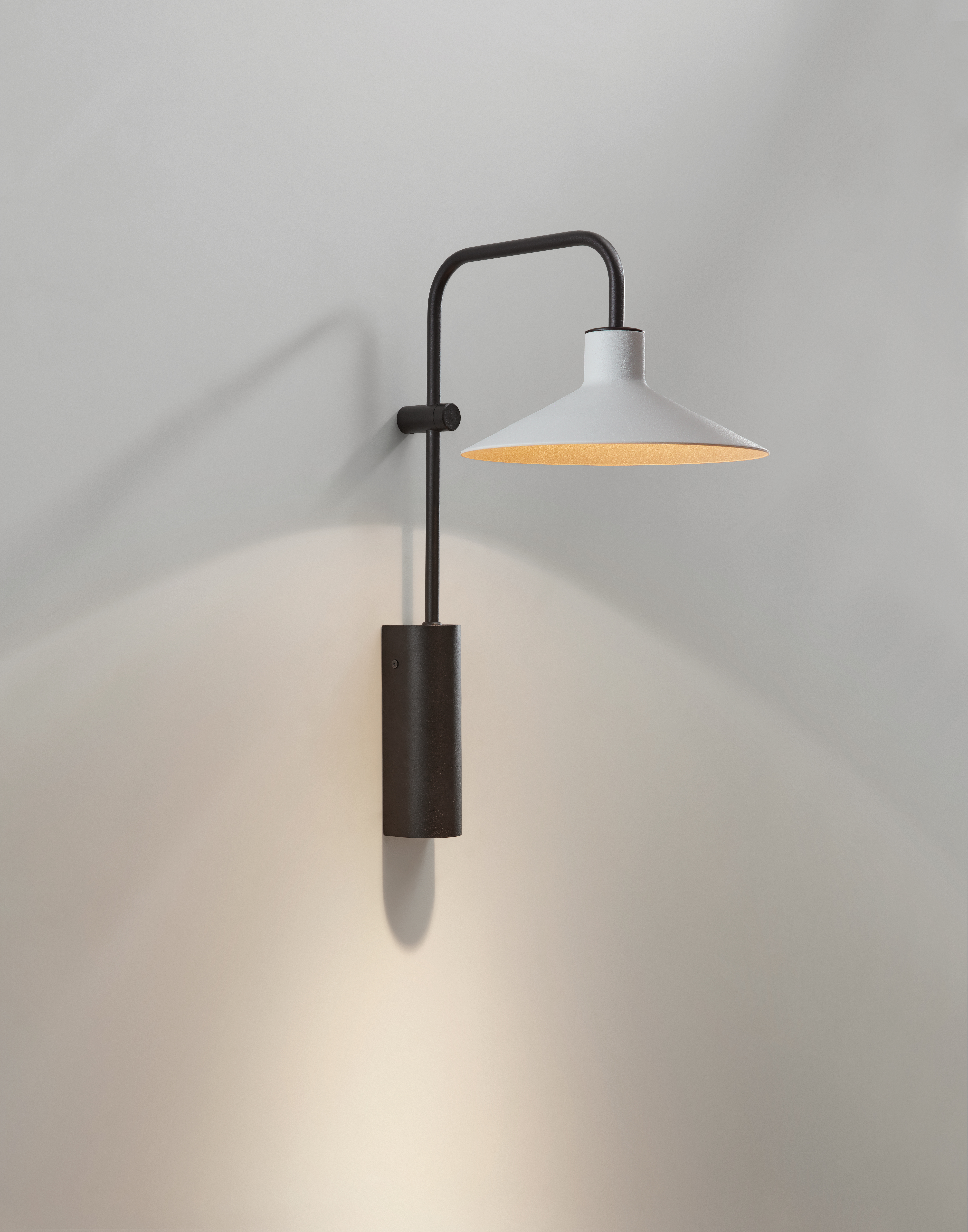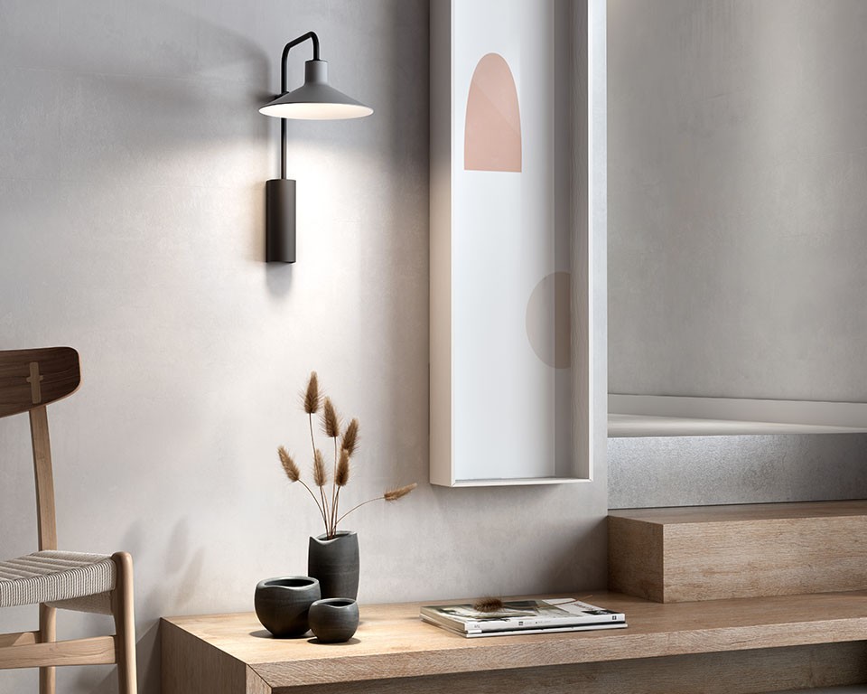 Дизайн Platet A/02 сохраняет простоту и узнаваемые черты промышленного стиля. Металлический кронштейн удерживает эмалированный отражающий диск, формируя лаконичный и выразительный силуэт.