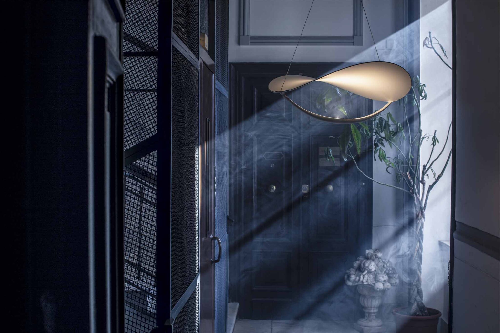 Plena — это воплощение элегантности и технологического совершенства. Светильник получил свое название в честь полной луны, что отражает его способность наполнять пространство мягким, обволакивающим светом. Дизайн построен на динамичном балансе между легким лепестком-рассеивателем и тонкой дугообразной рамой. Светильник обеспечивает мощный поток отраженного света вверх (на потолок) и одновременно мягко рассеивает свет вниз, создавая уютную атмосферу без слепящего эффекта. Тонкое полотно из специального лакированного ПВХ натянуто на алюминиевый каркас. Модель оснащена высокоэффективным LED-модулем с отличной цветопередачей (CRI>90), максимально приближенной к естественному спектру.