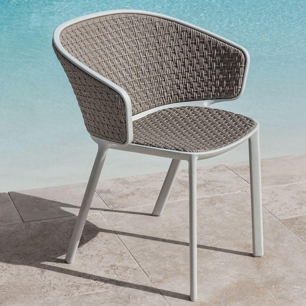 Pluvia — удобный стул от фабрики Ethimo. Модель отличается плетеными спинкой и сиденьем, которые отлично сочетаются с легкой, алюминиевой структурой. Преимущество этого стула в том, что он может штабелироваться в количестве до 3 штук. Дополнительно можно приобрести чехол от дождя. Более подробную информацию можно уточнить у менеджера.