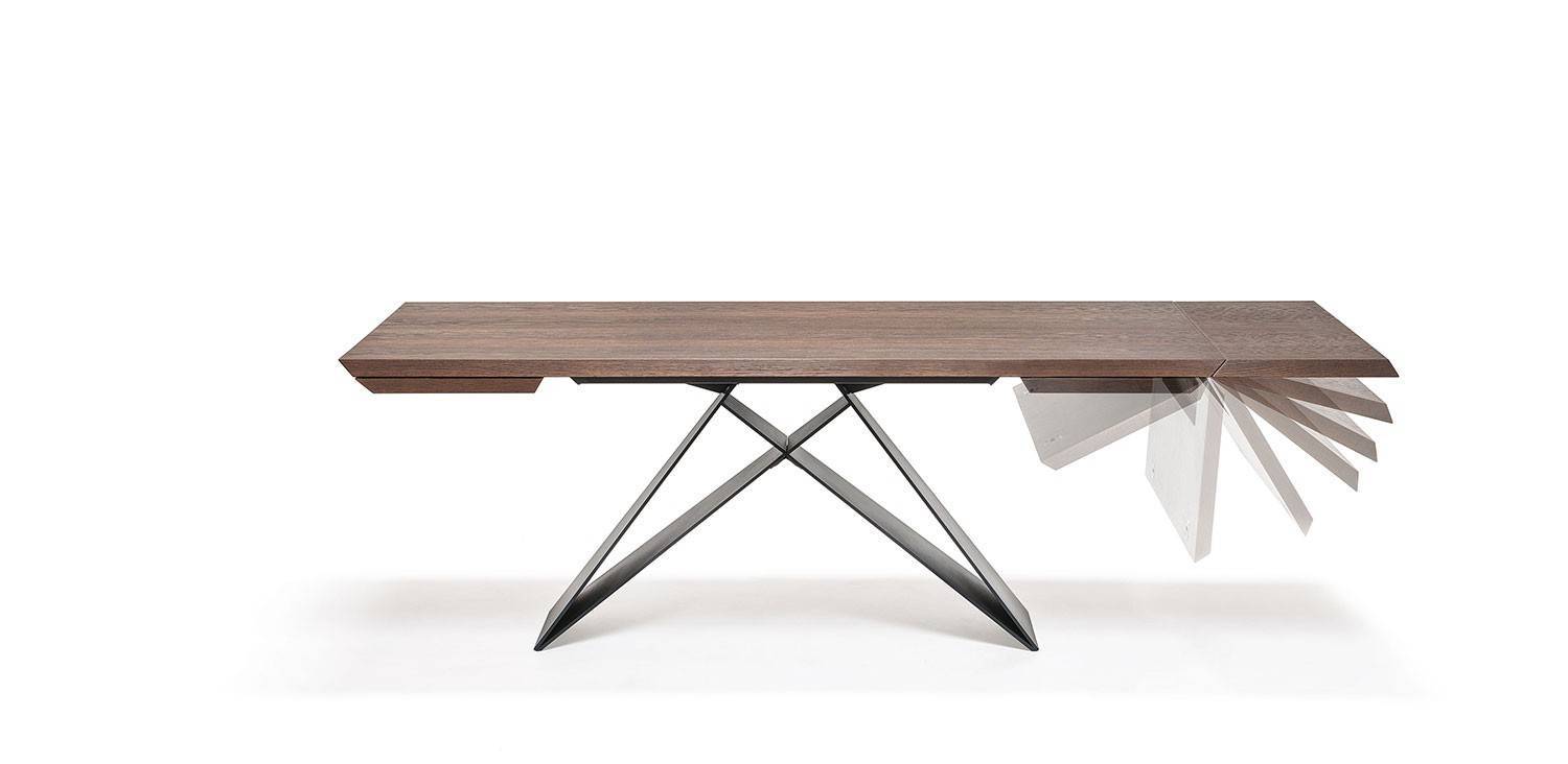 Premier Keramik Drive — раздвижной стол со стальной основой от фабрики Cattelan Italia. Основа может быть окрашена в цвета: титан, графит или черный. Столешница и дополнительные расширители выполнены из дерева Canaletto или жженого дуба. Стол доступен в трех размерах и может быть как с раздвижной, так и с цельной столешницей. Также в коллекцию входят столы со стеклянной и керамической столешницей. Более подробную информацию можно уточнить у менеджера.