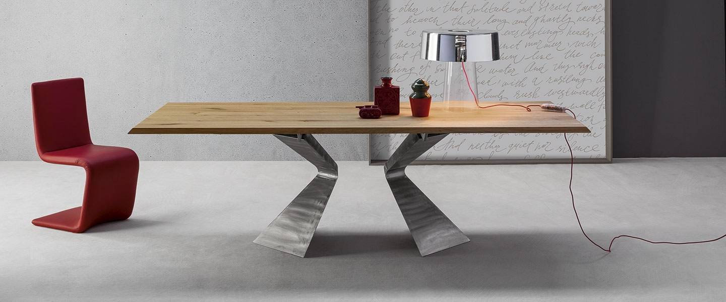 Обеденный стол с мощным наклонным основанием отличается выразительным дизайном, вдохновлённым формами морской архитектуры — его профиль напоминает носовую часть корабля, придающую модели ощущение движения, динамики и пластики. Такая конструкция не только украшает пространство, но и гармонично в нём существует, визуально его расширяя и балансируя.